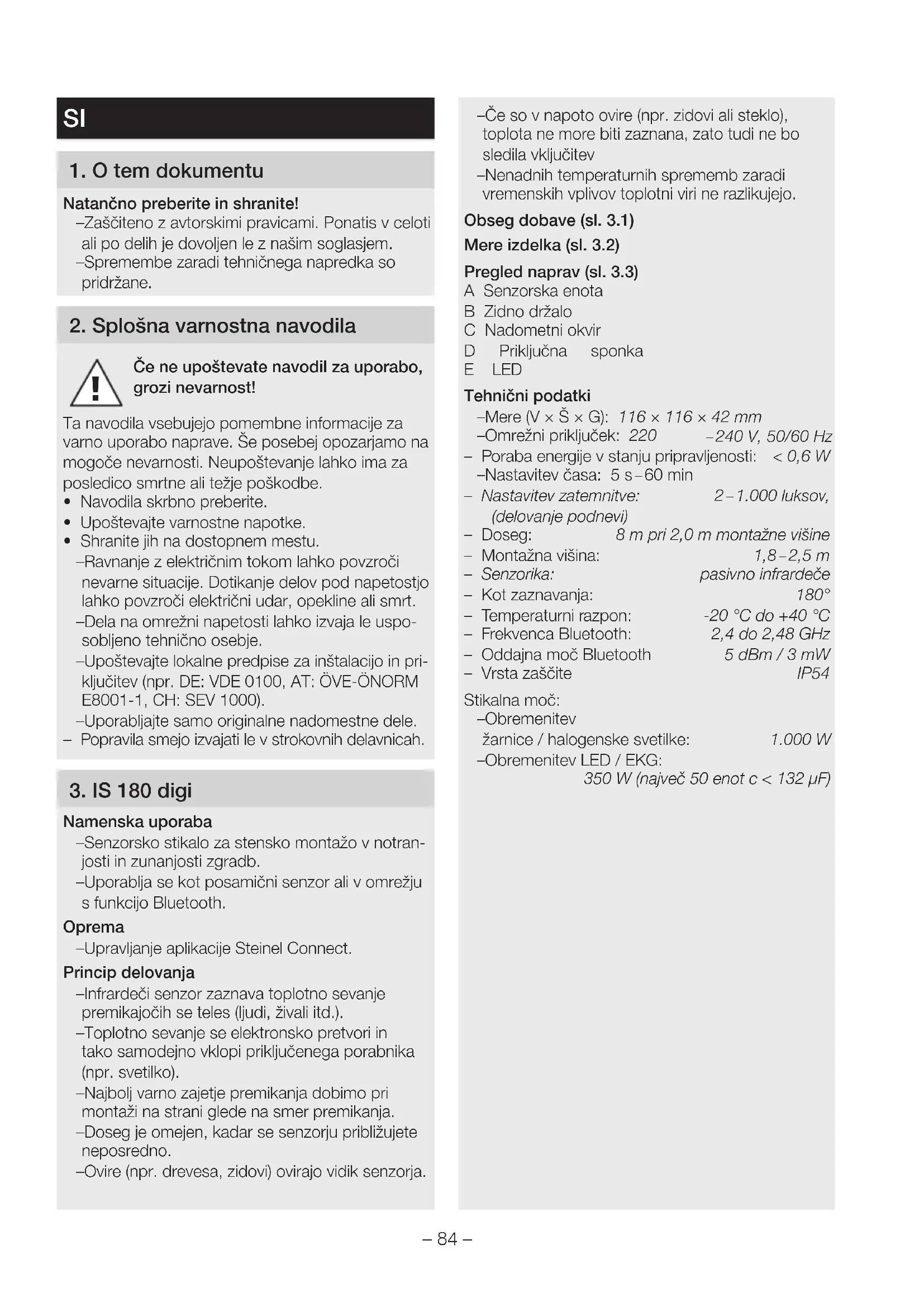 NAVODILA ZA UPORABO IS 180 Digi STEINEL