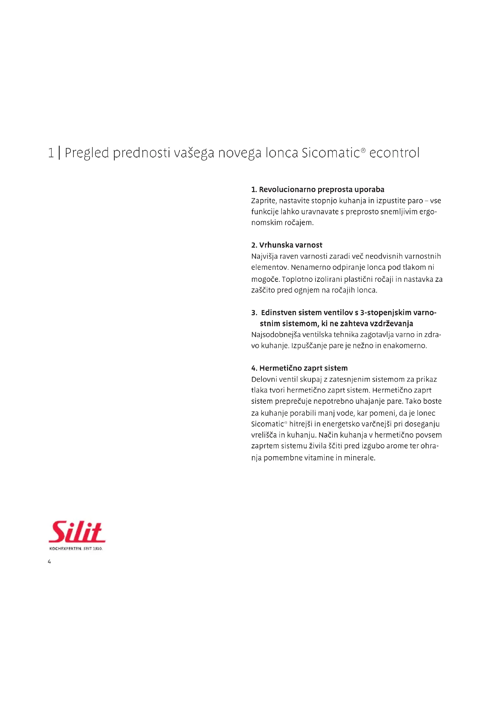 Za zatesnitev lonca in pokrova.11 5 | 5-stopenjska varnost vašega lonca Sicomatic® econtrol Lonec Sicomatic® econtrol, ki ste ga kupili, je tehnično izpopolnjen izdelek. V sebi združuje večdesetletne izku- šnje na področju proizvodnje in razvoja ekonom loncev.