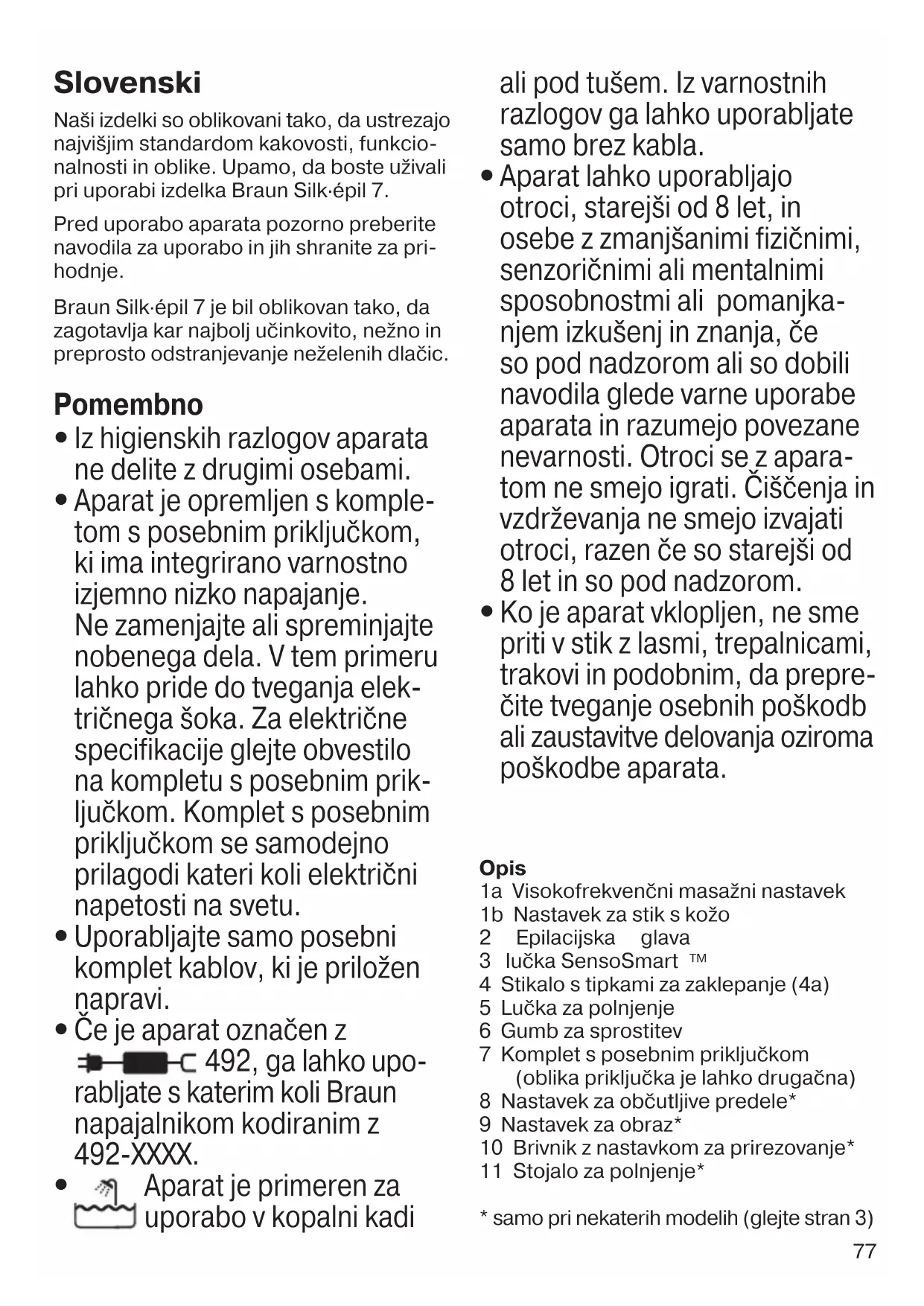 Če je aparat označen z 492, ga lahko upo- rabljate s katerim koli Braun napajalnikom kodiranim z 492-XXXX.