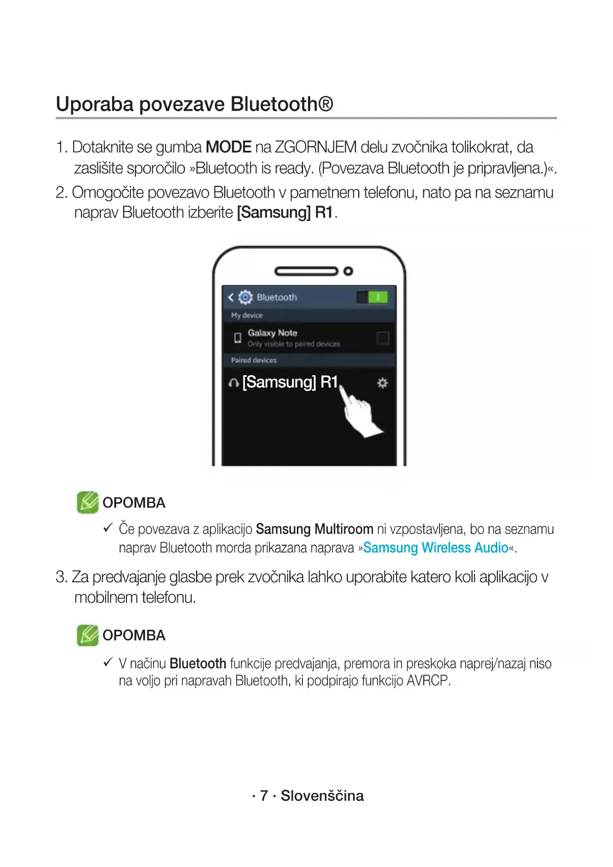 Če povezava z aplikacijo Samsung Multiroom ni vzpostavljena, bo na seznamu naprav Bluetooth morda prikazana naprava »Samsung Wireless Audio«.