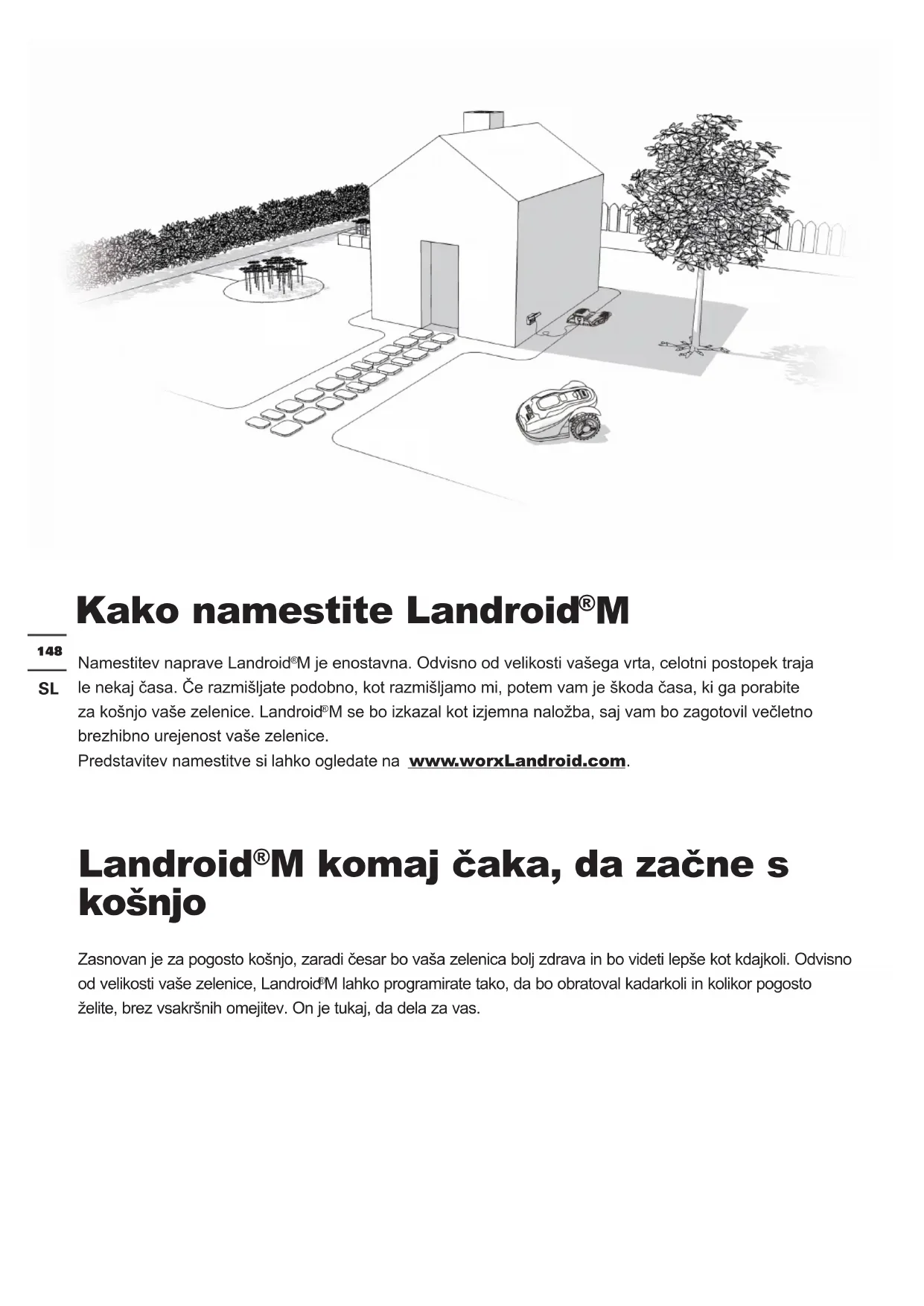 M se bo izkazal kot izjemna naložba, saj vam bo zagotovil večletno brezhibno urejenost vaše zelenice. Predstavitev namestitve si lahko ogledate na www.worxLandroid.com. Landroid