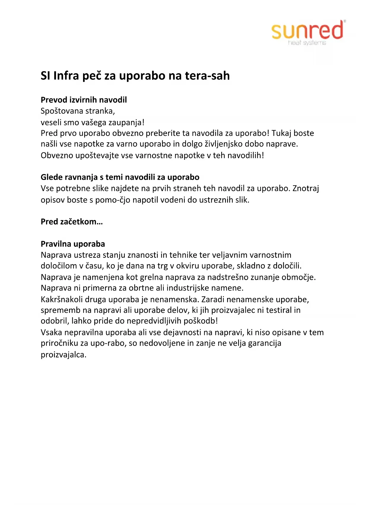 - Vse priročnike za uporabo in varnostna navodila shranite za prihodnjo uporabo.