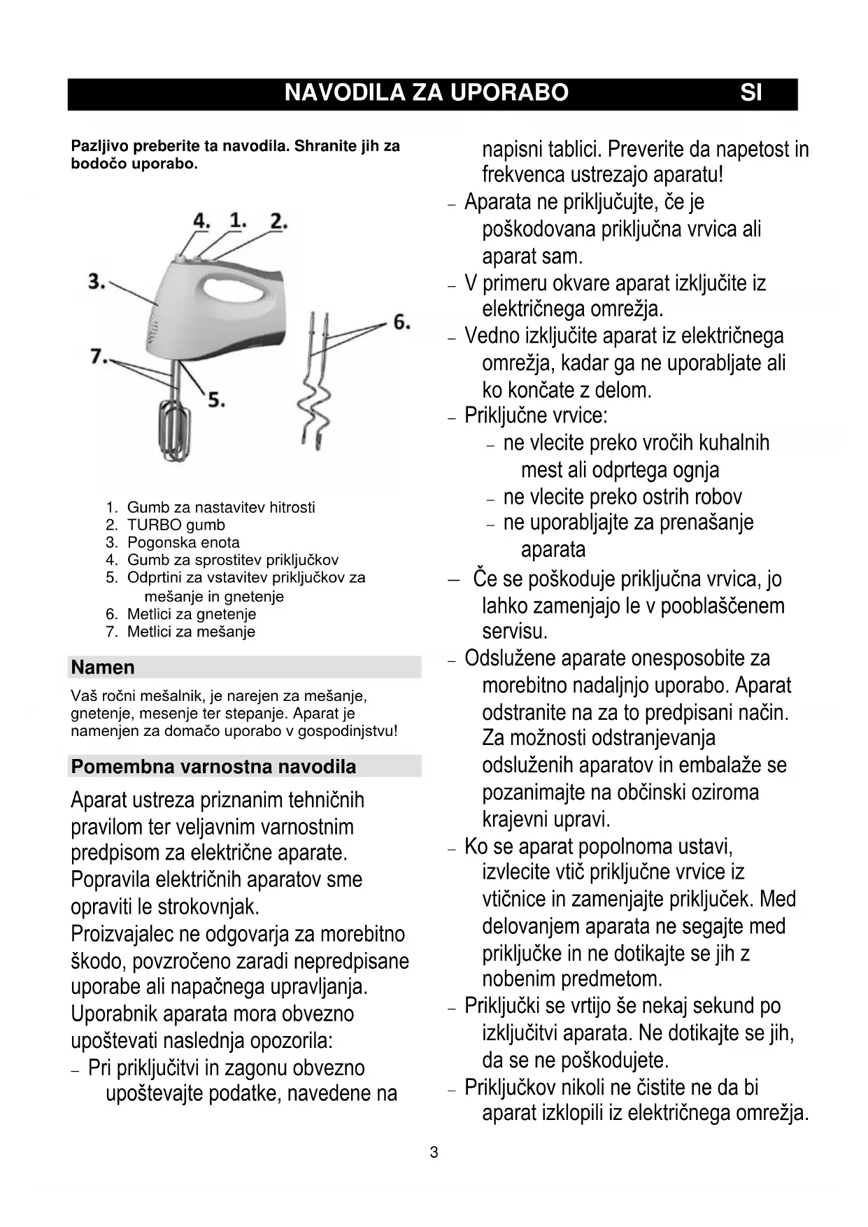 Navodilo za uporabo SI