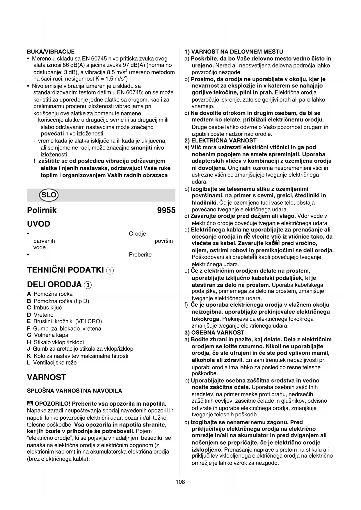 VARNOSTNA NAVODILA ZA POLIRNIKE