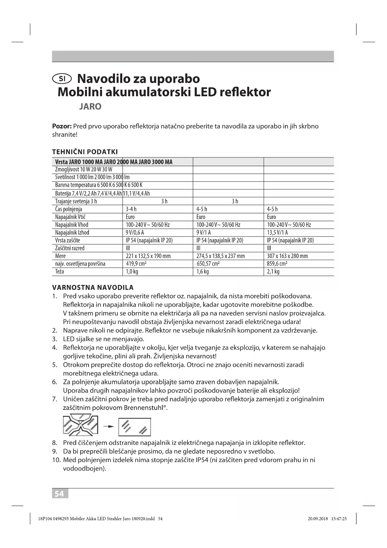 NAVODILA ZA UPORABO JARO 3000 MA BRENNENSTUHL