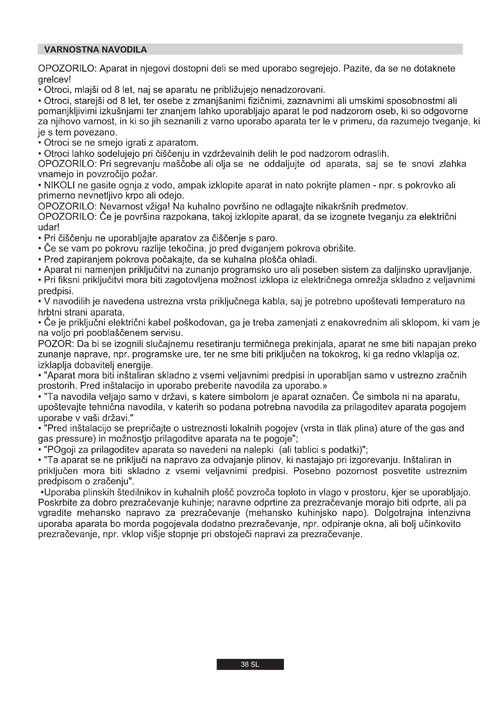 - Otroci lahko sodelujejo pri čiščenju in vzdrževalnih delih le pod nadzorom odraslih. OPOZORILO: Pri segrevanju maščobe ali olja se ne oddaljujte od aparata, saj se te snovi zlahka vnamejo in povzročijo požar.