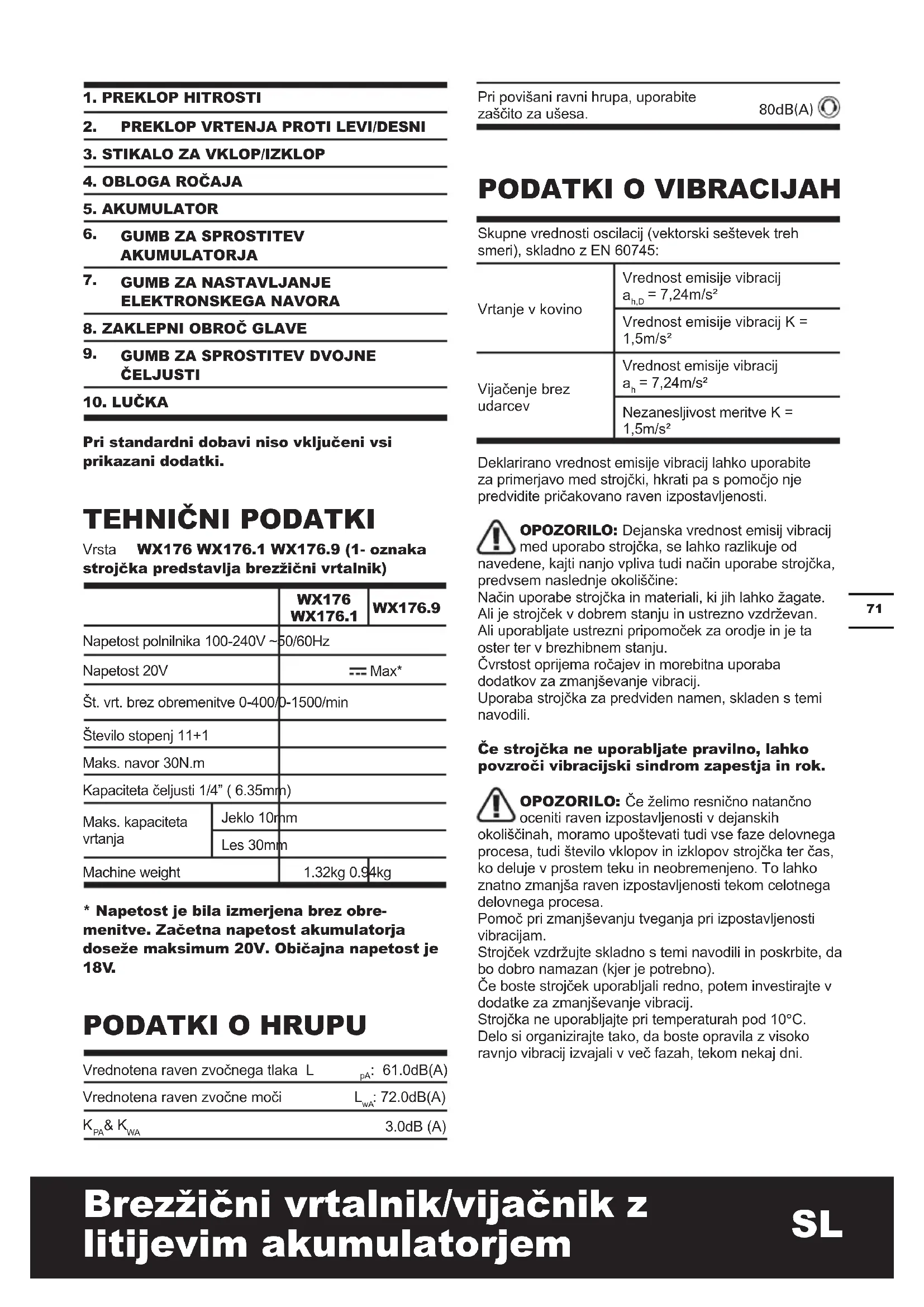NAVODILA ZA UPORABO WX176.9 WORX