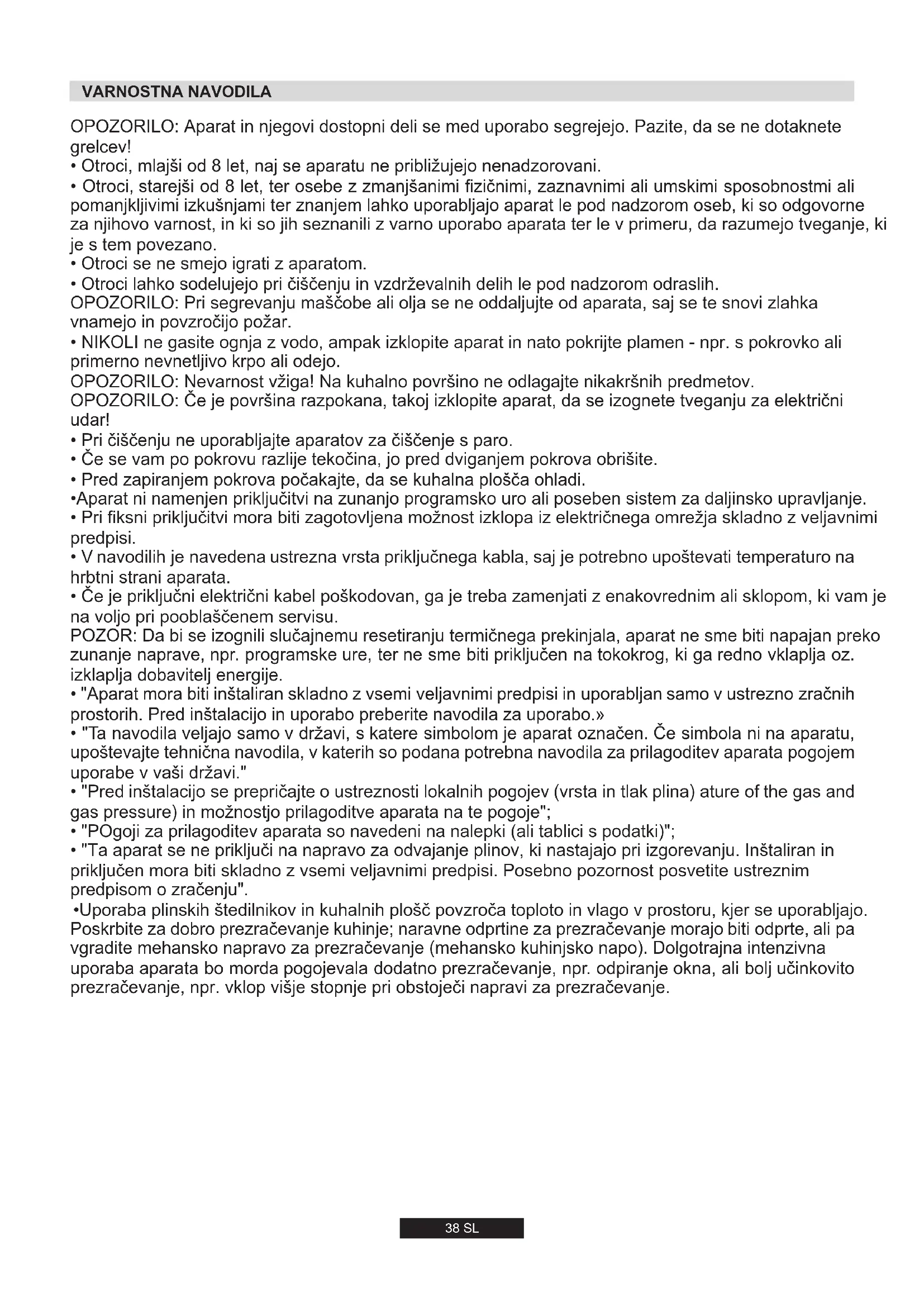- Otroci lahko sodelujejo pri čiščenju in vzdrževalnih delih le pod nadzorom odraslih. OPOZORILO: Pri segrevanju maščobe ali olja se ne oddaljujte od aparata, saj se te snovi zlahka vnamejo in povzročijo požar.