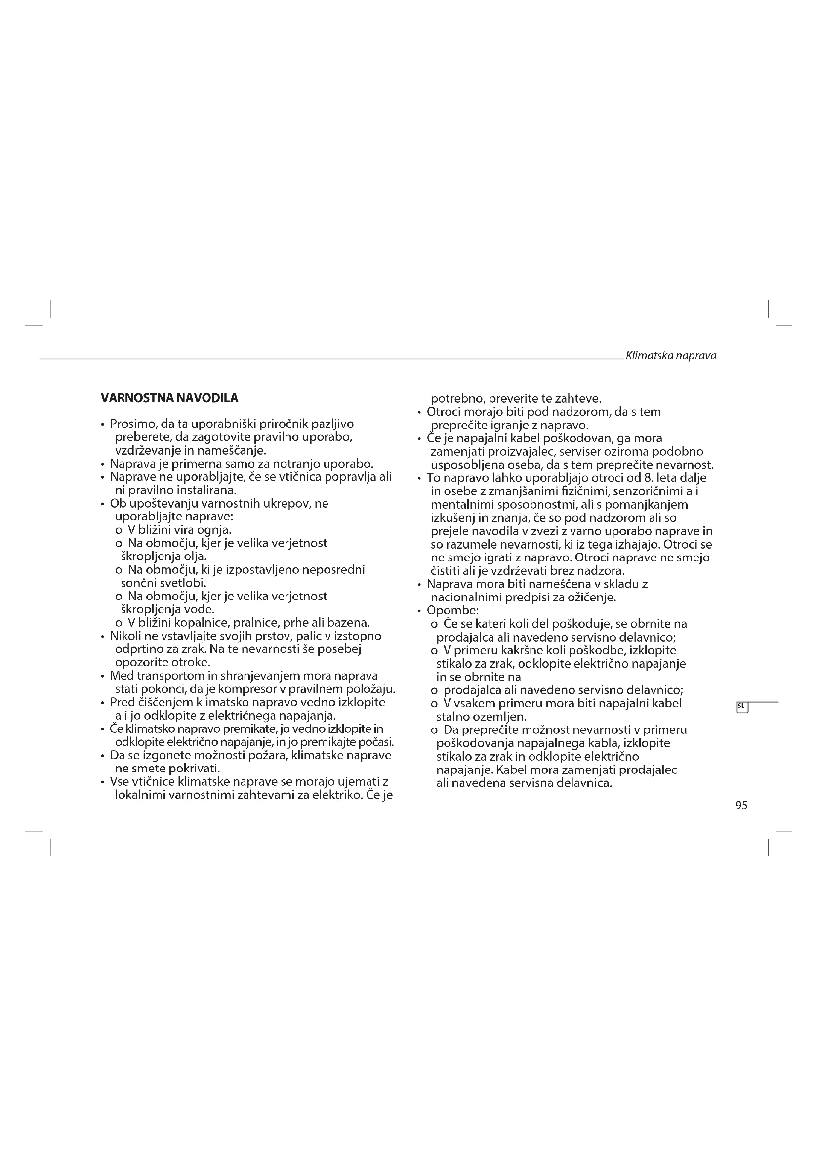 - Nikoli ne vstavljajte svojih prstov, palic v izstopno odprtino za zrak. Na te nevarnosti še posebej opozorite otroke.