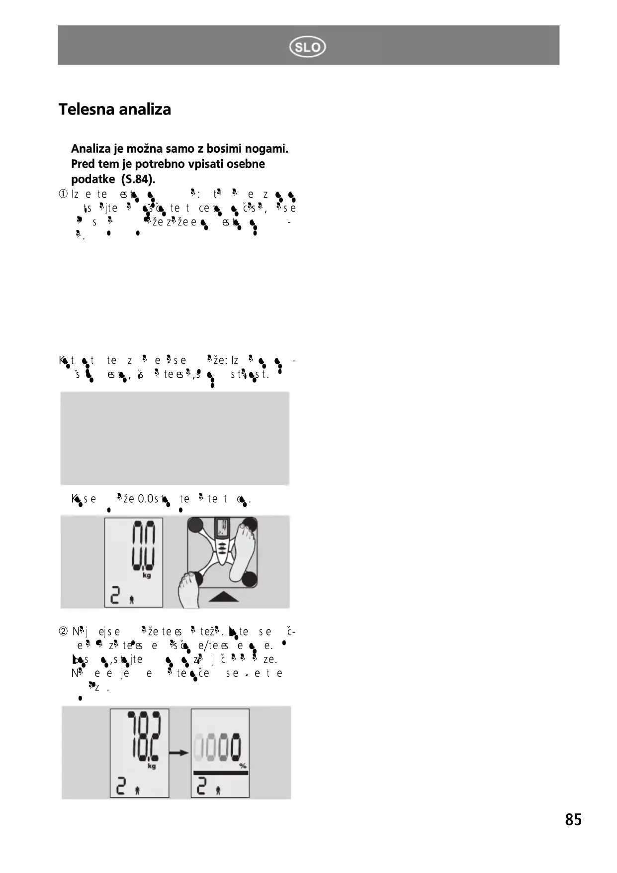 Analiza je mayna samo z bosimi nogami. Pred tem je potrebno vpisati osebne podatke (S.84).