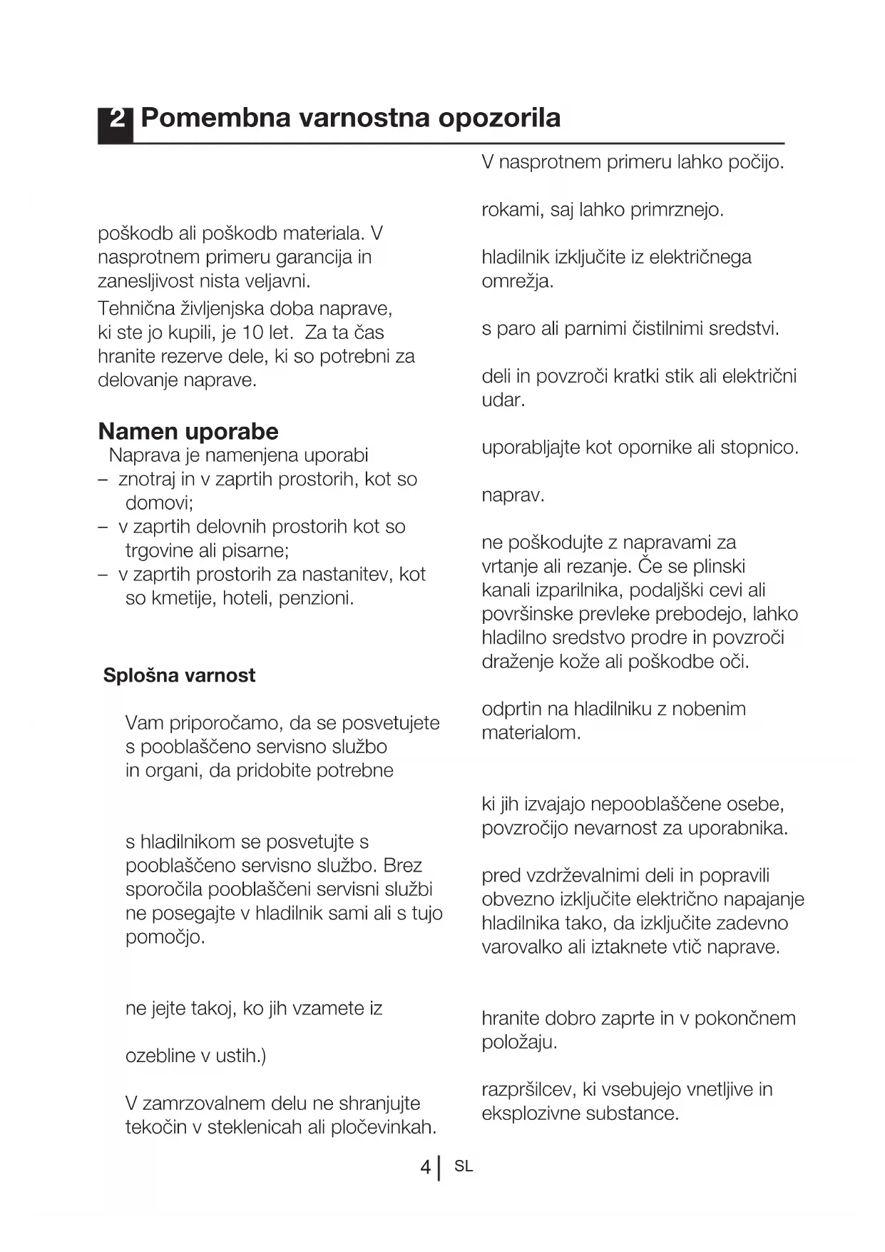 - Hladilnik je namenjen samo shranjevanju živil. Ne uporabljajte ga v druge namene.