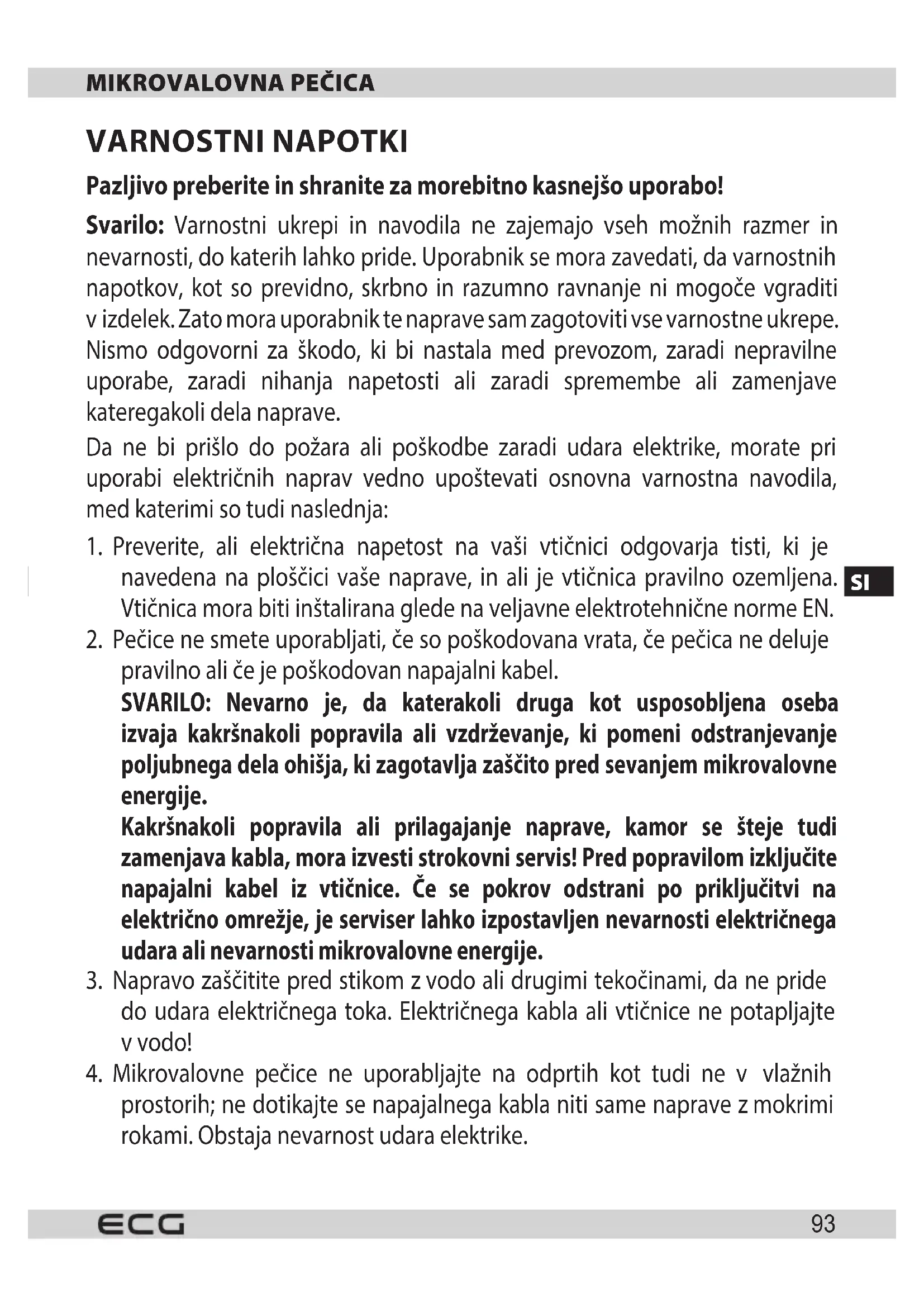 - Mikrovalovno pečico uporabljajte samo na način, predpisan v teh navodilih. Mikrovalovna pečica je namenjena samo za hišno uporabo. Proizvajalec ne odgovarja za škodo, ki bi nastala zaradi nepravilne uporabe te naprave.