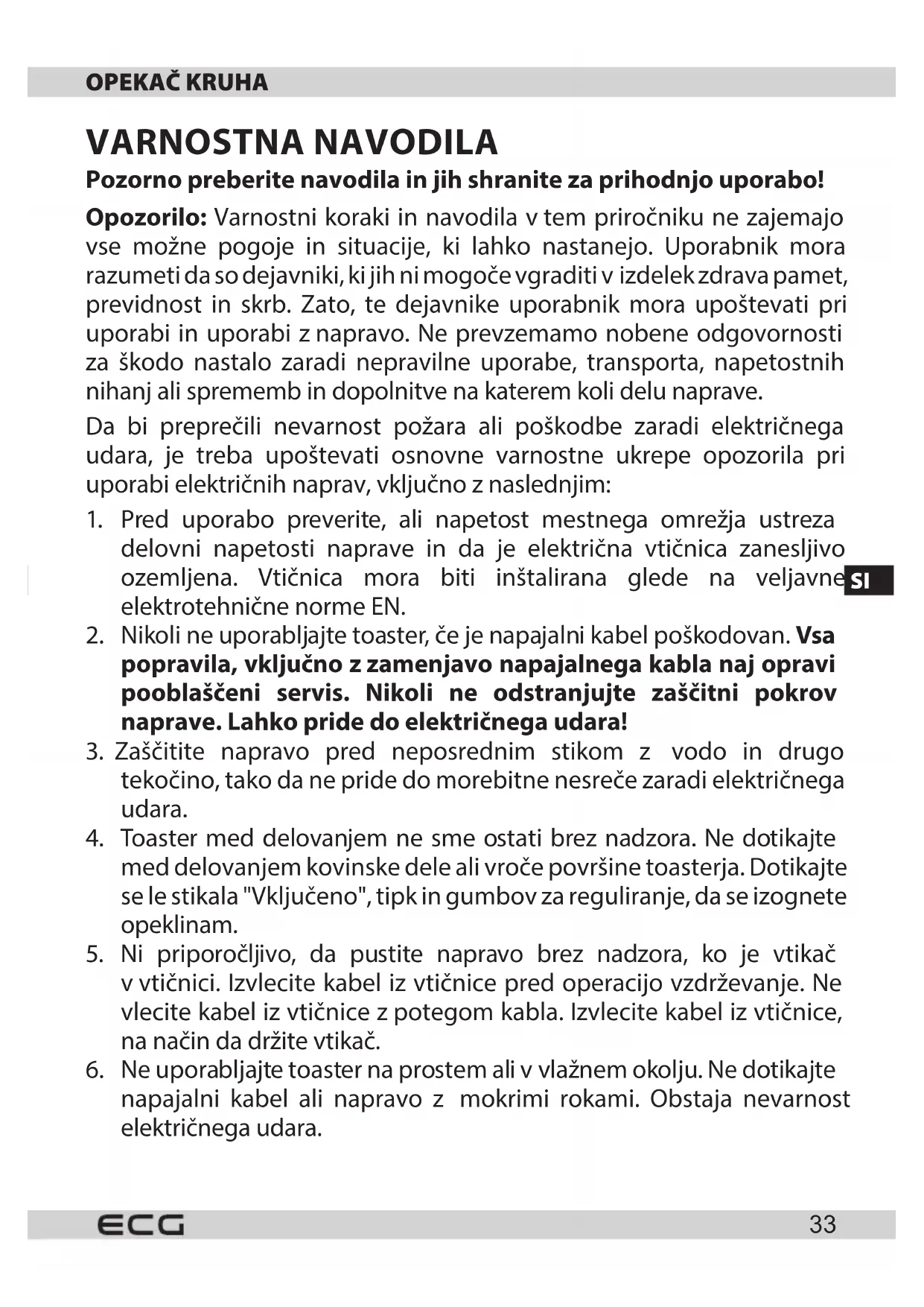 ST 8730 - Opekač kruha ECG - Brezplačna navodila za uporabo