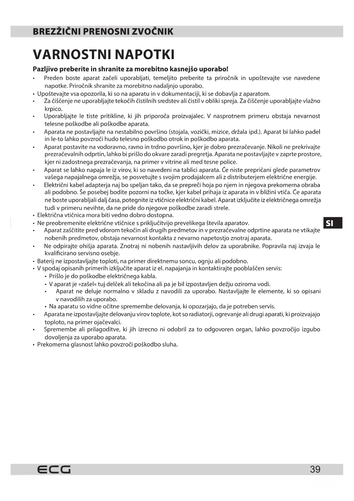 - Za polnjenje zvočnika uporabite le kakovosten adapter.