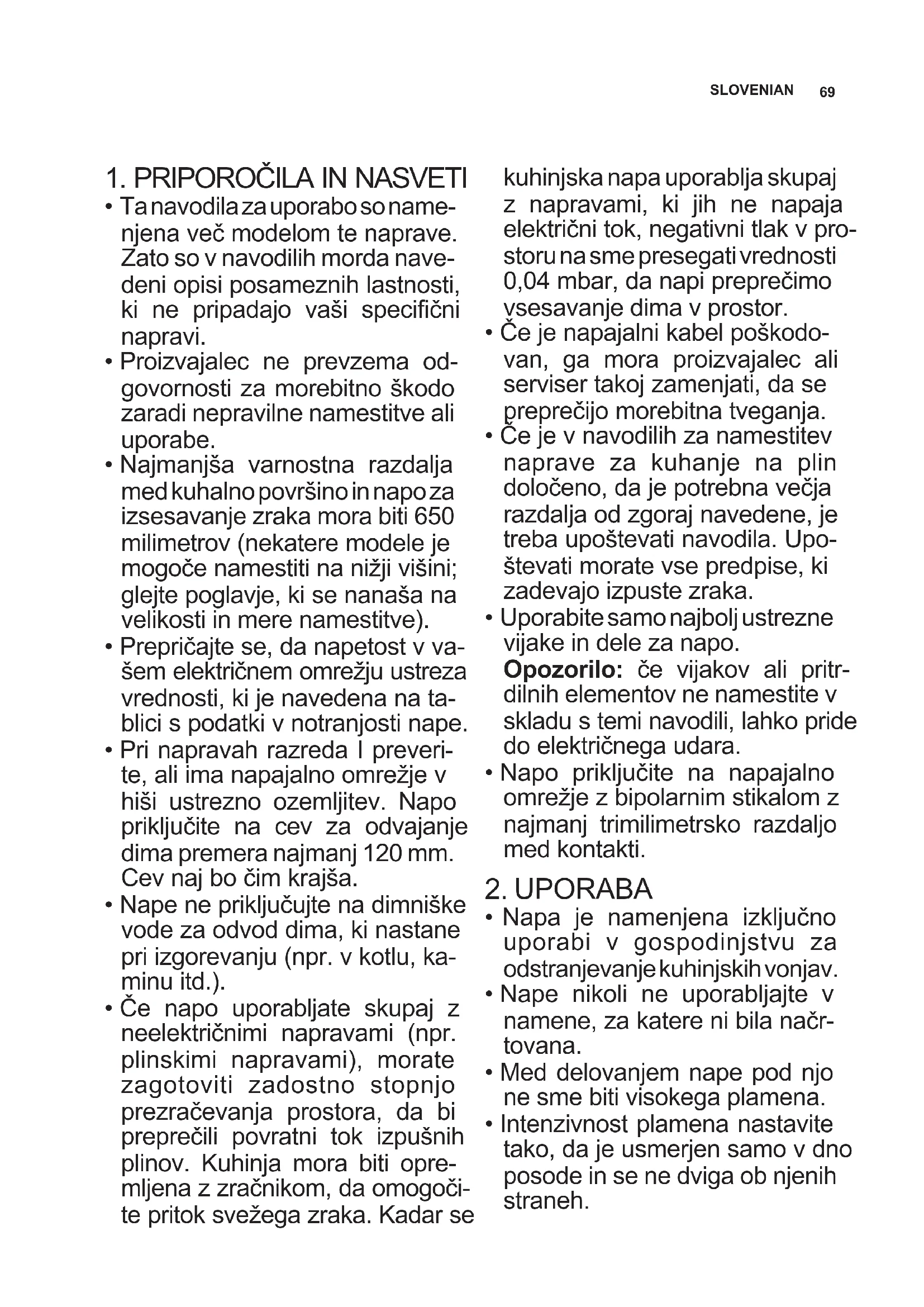 - Napa je namenjena izključno uporabi v gospodinjstvu za odstranjevanje kuhinjskih vonjav.