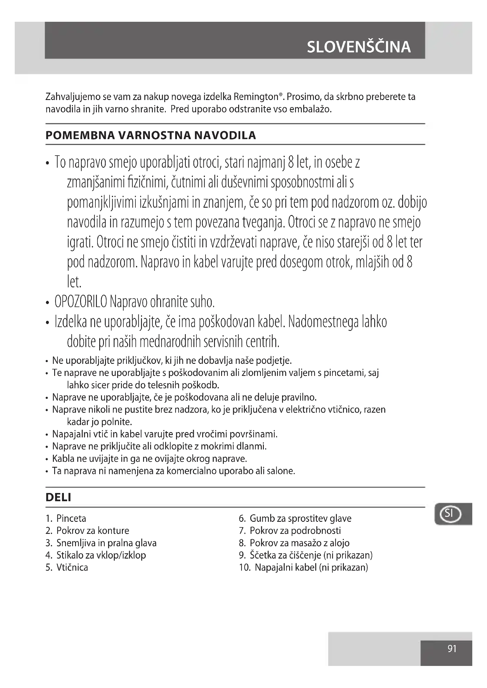 - Ta naprava ni namenjena za komercialno uporabo ali salone. DELI