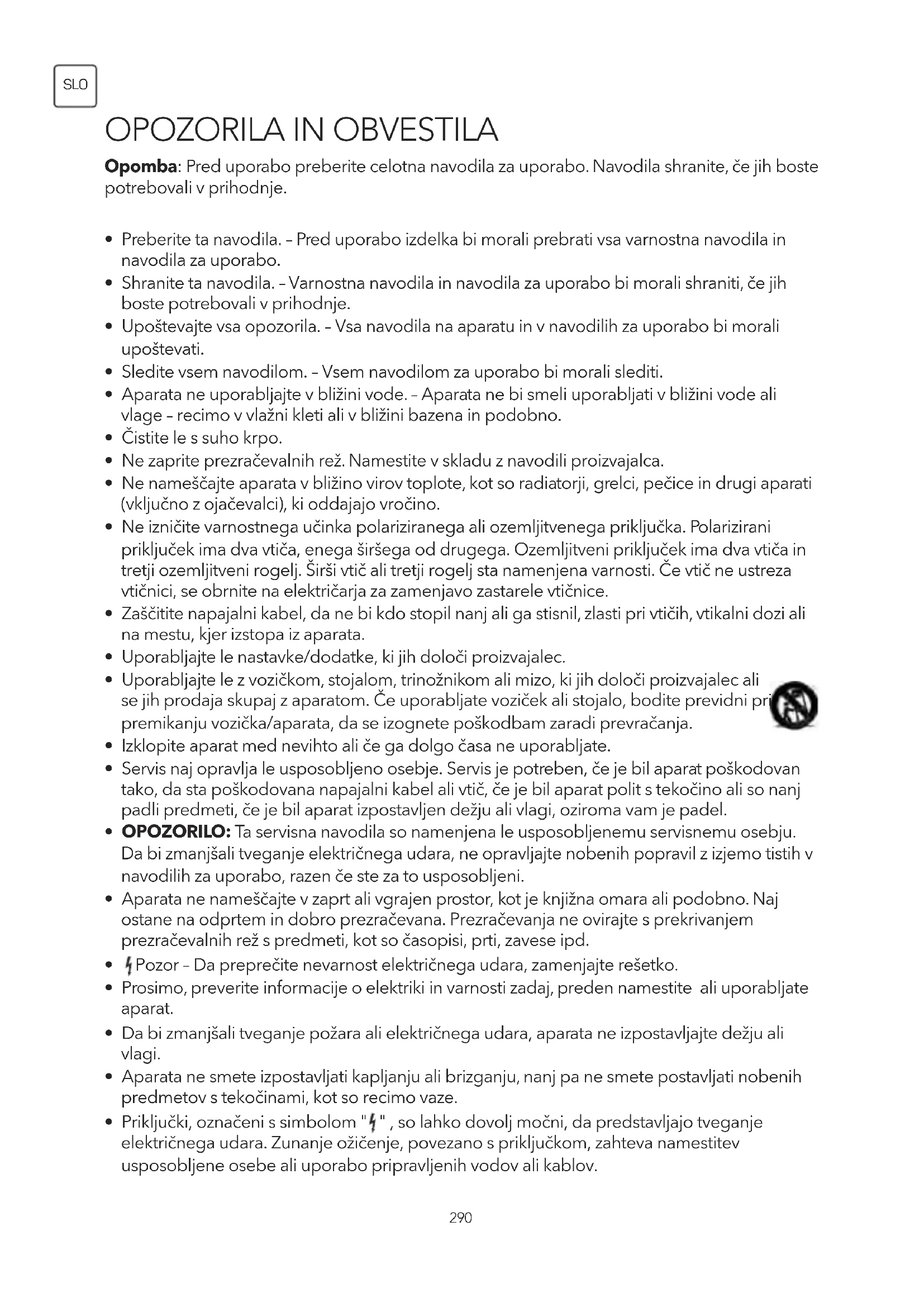 - Upoštevajte vsa opozorila. – Vsa navodila na aparatu in v navodilih za uporabo bi morali upoštevati.