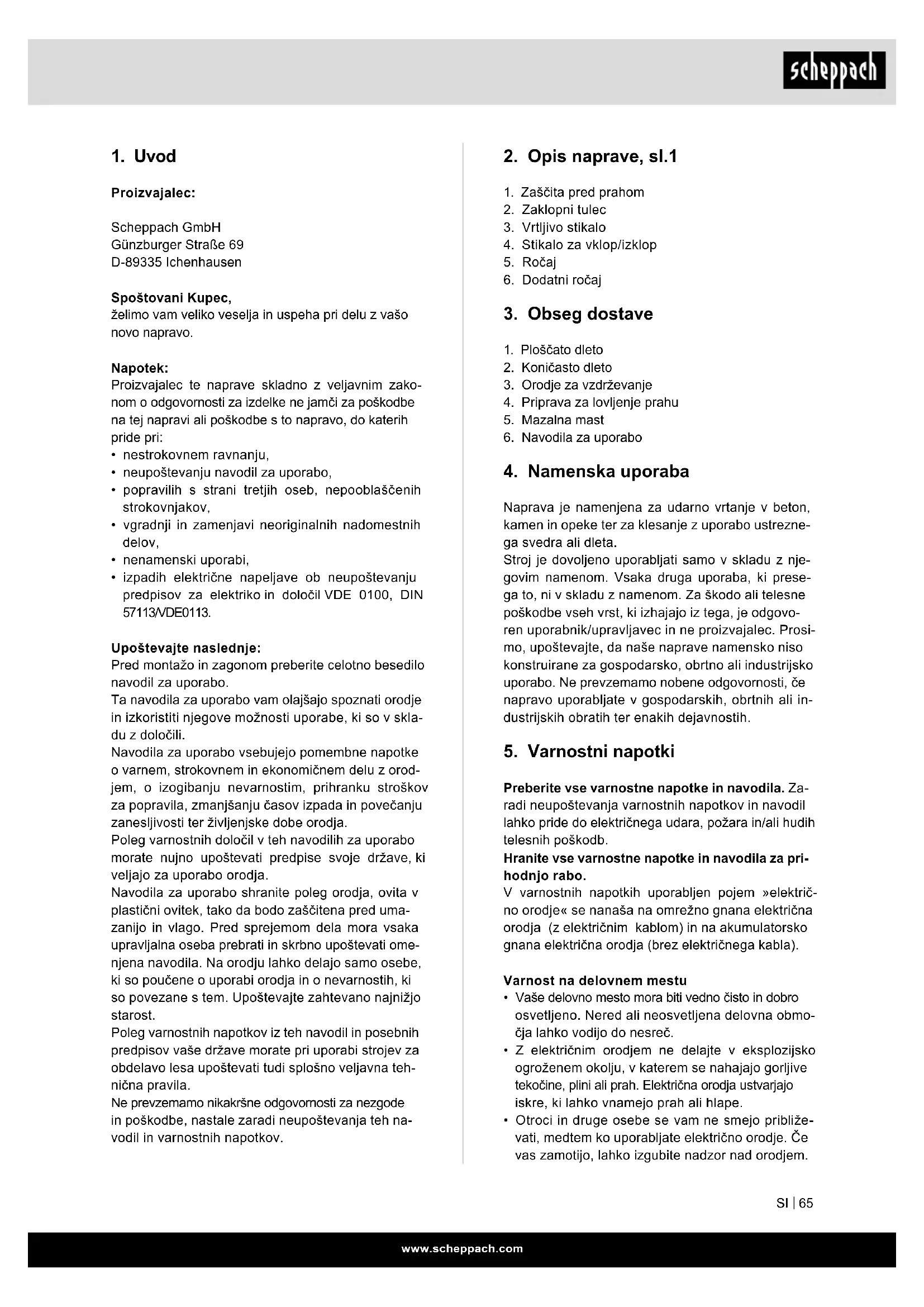 NAVODILA ZA UPORABO DH1200MAX SCHEPPACH
