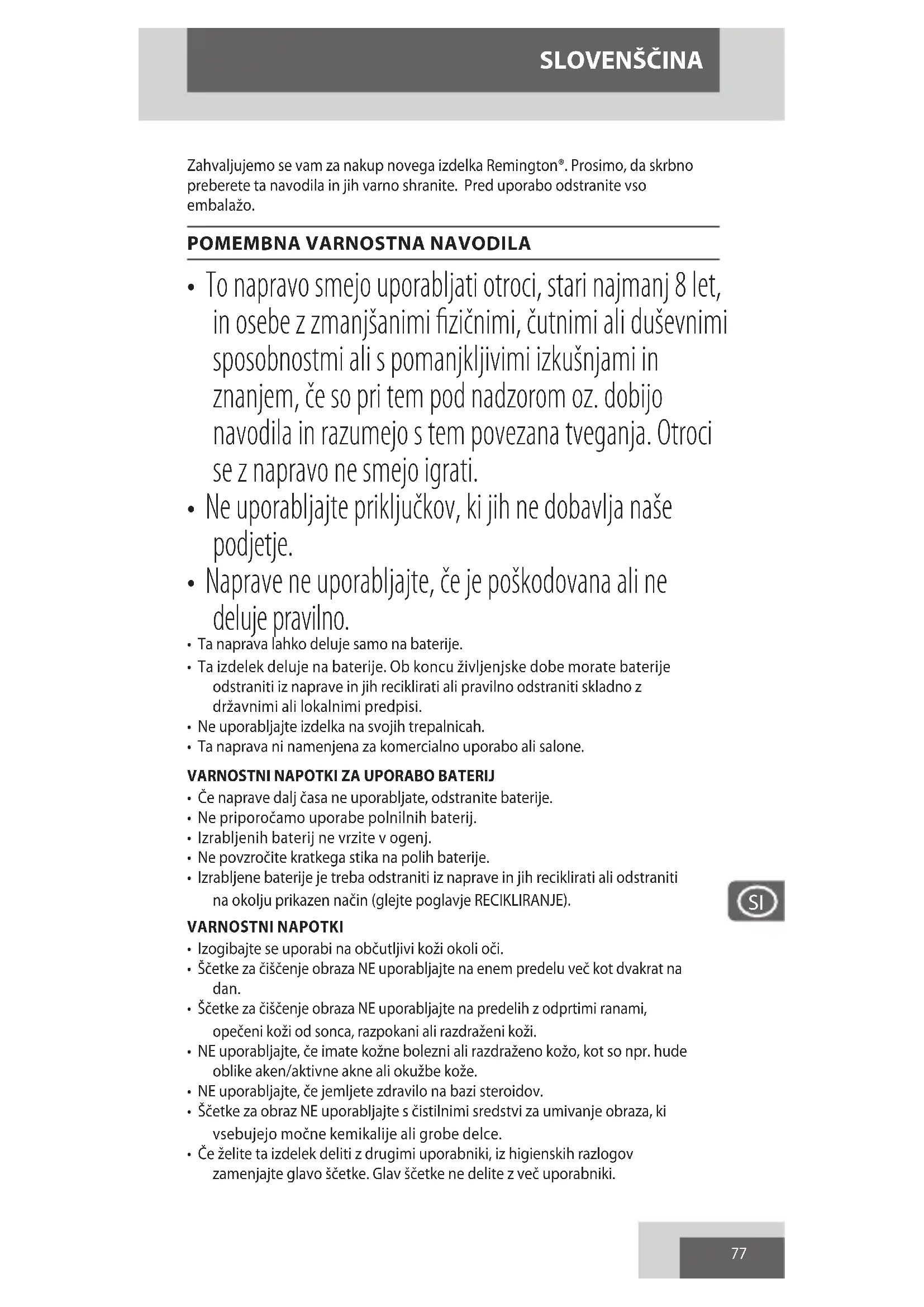 3 mesece. Za več informacij se obrnite na najbližji servisni center Remington. SLOVENŠČINA