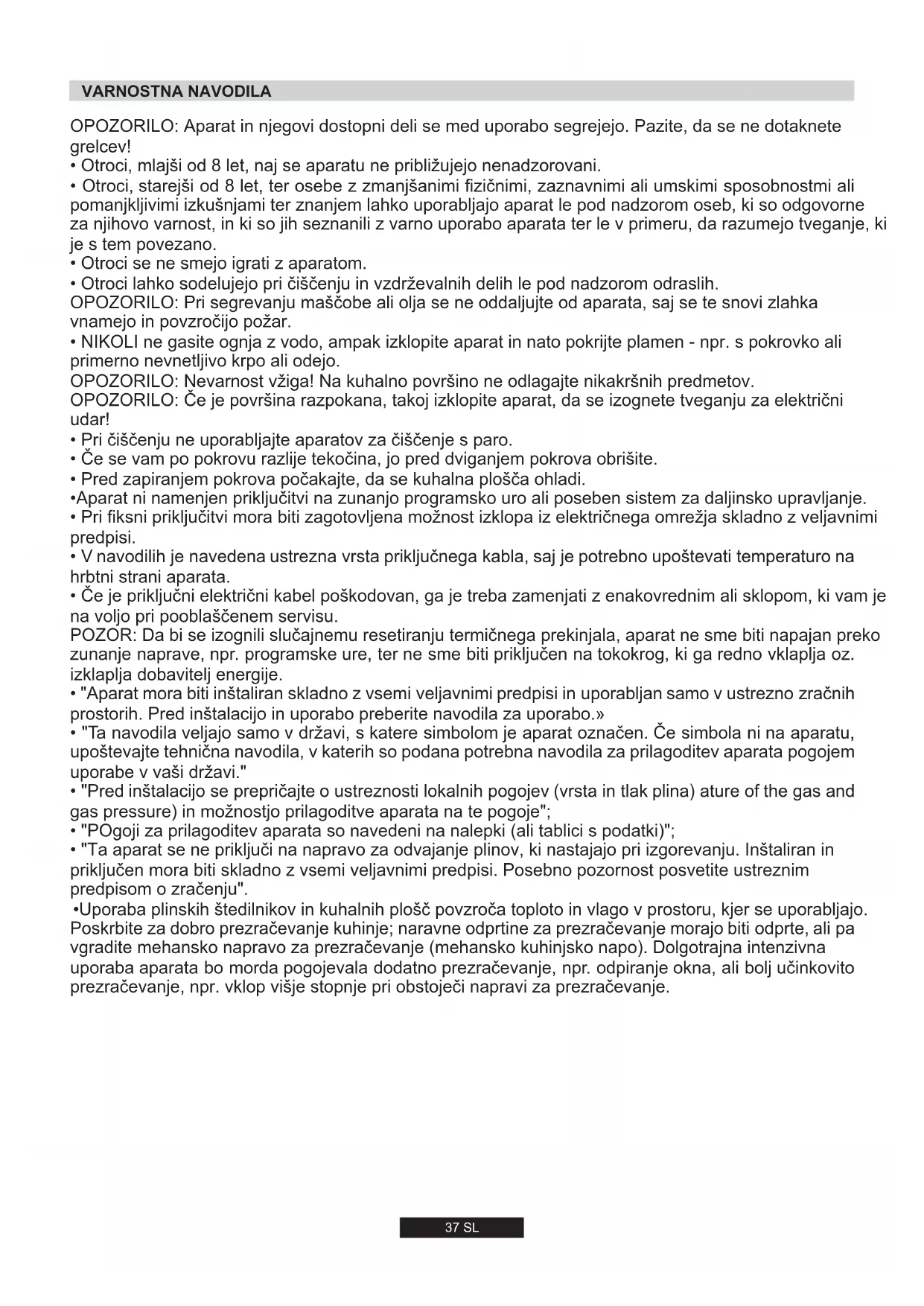 - "Ta aparat se ne priključi na napravo za odvajanje plinov, ki nastajajo pri izgorevanju. Inštaliran in priključen mora biti skladno z vsemi veljavnimi predpisi. Posebno pozornost posvetite ustreznim predpisom o zračenju".