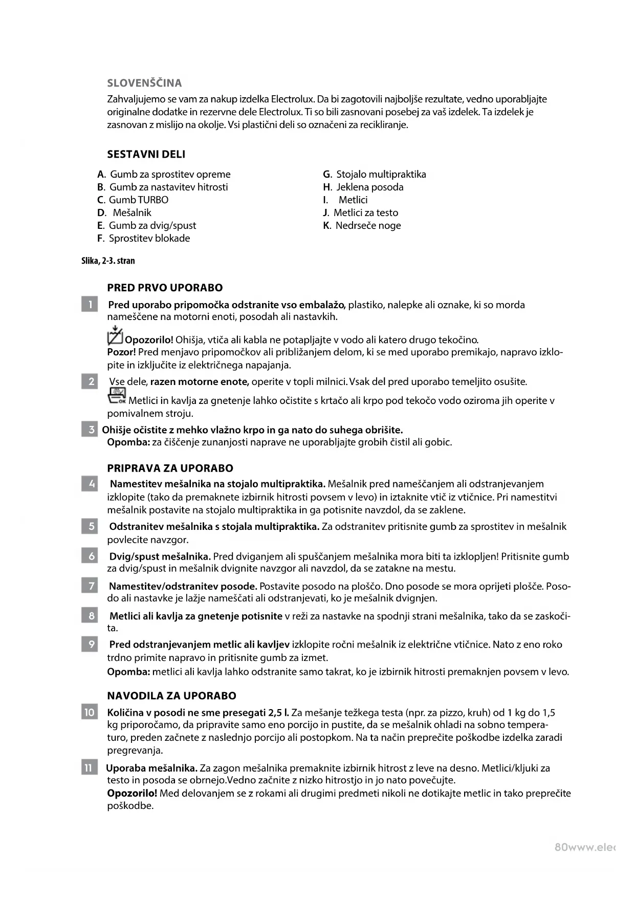 - Naprava je namenjena samo za domačo uporabo. Izdelovalec ne prevzema odgovornosti za morebitno škodo ali poškodbe, ki so posledica neprimerne ali napačne uporabe naprave.82www.electrolux.com RECEPTI