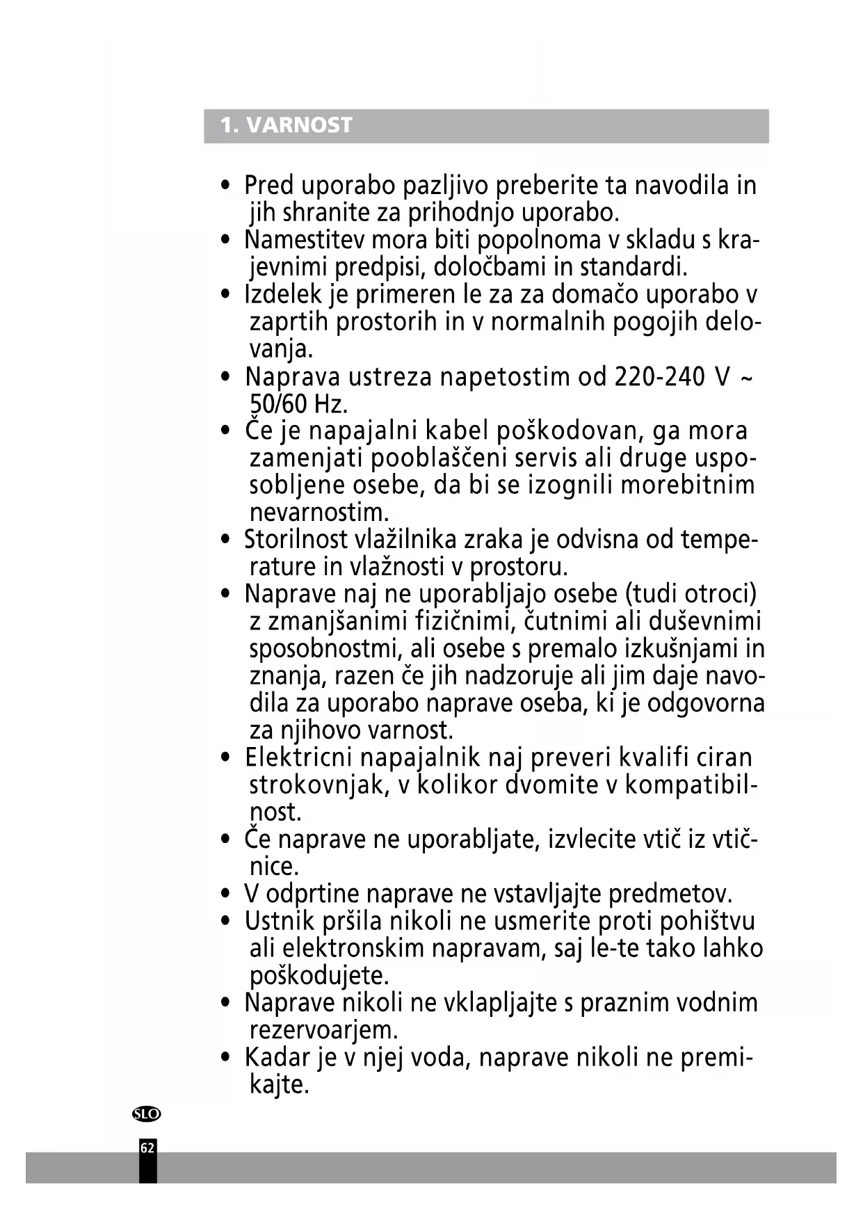 - Izdelek je primeren le za za domačo uporabo v zaprtih prostorih in v normalnih pogojih delo- vanja.