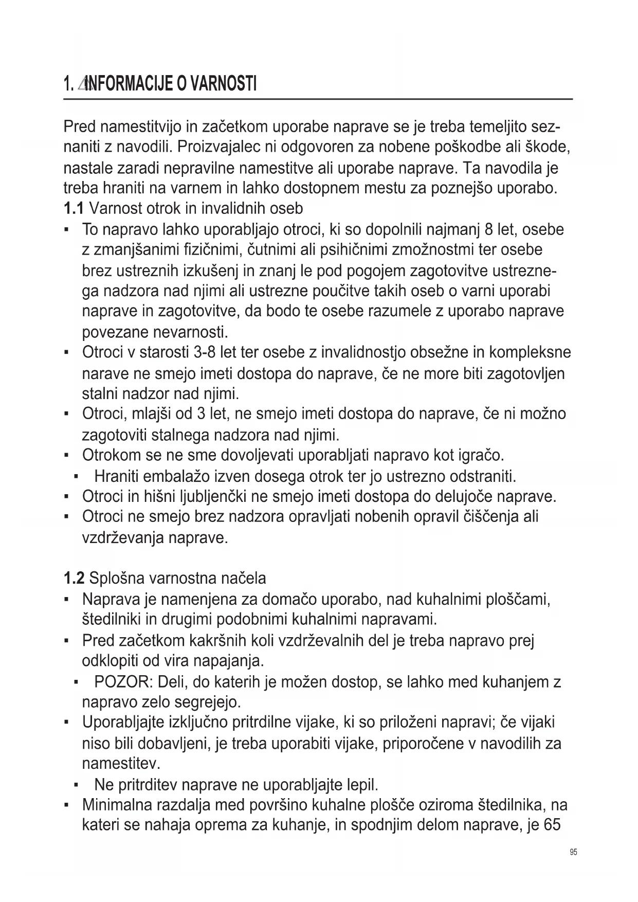 - To napravo lahko uporabljajo otroci, ki so dopolnili najmanj 8 let, osebe z zmanjšanimi fi zičnimi, čutnimi ali psihičnimi zmožnostmi ter osebe brez ustreznih izkušenj in znanj le pod pogojem zagotovitve ustrezne- ga nadzora nad njimi ali ustrezne poučitve takih oseb o varni uporabi naprave in zagotovitve, da bodo te osebe razumele z uporabo naprave povezane nevarnosti.