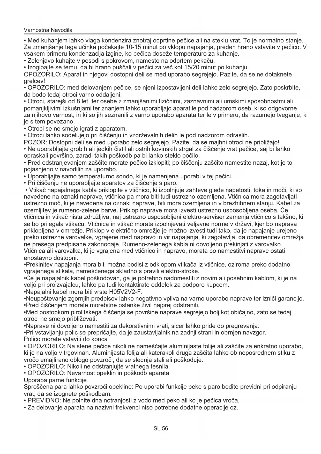 - Za delovanje aparata na nazivni frekvenci niso potrebne dodatne operacije oz. Varnostna Navodila SL 56Povzetek SL 57 Čiščenje in vzdrževanje pečice Splošna navodila