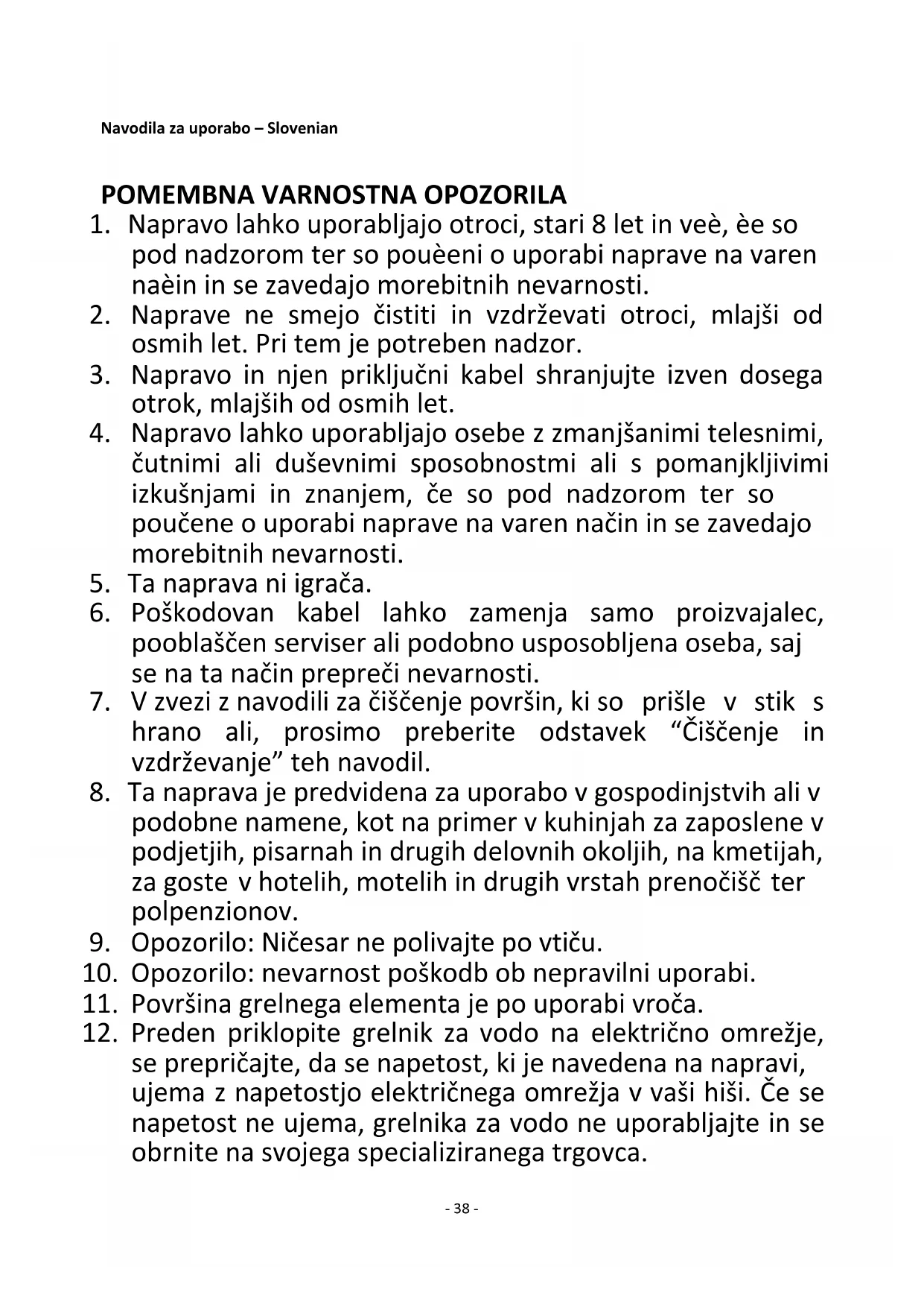 37. Ta naprava ni namenjena komercialni uporabi.