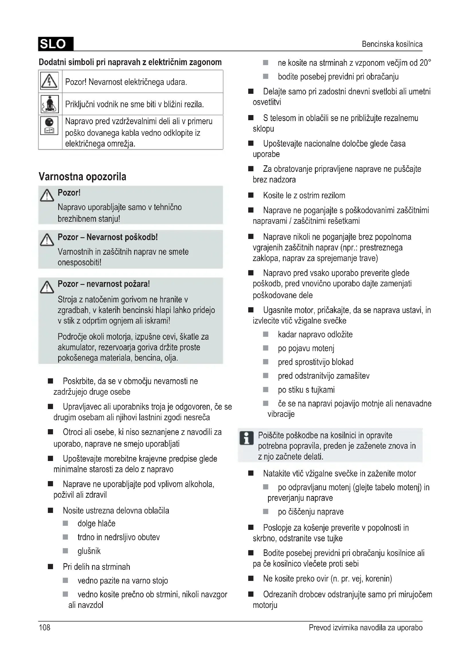 kosilnico odpeljati v servis ali pooblaščeni strokovni pogon.SLO Prevod izvirnika navodila za uporabo