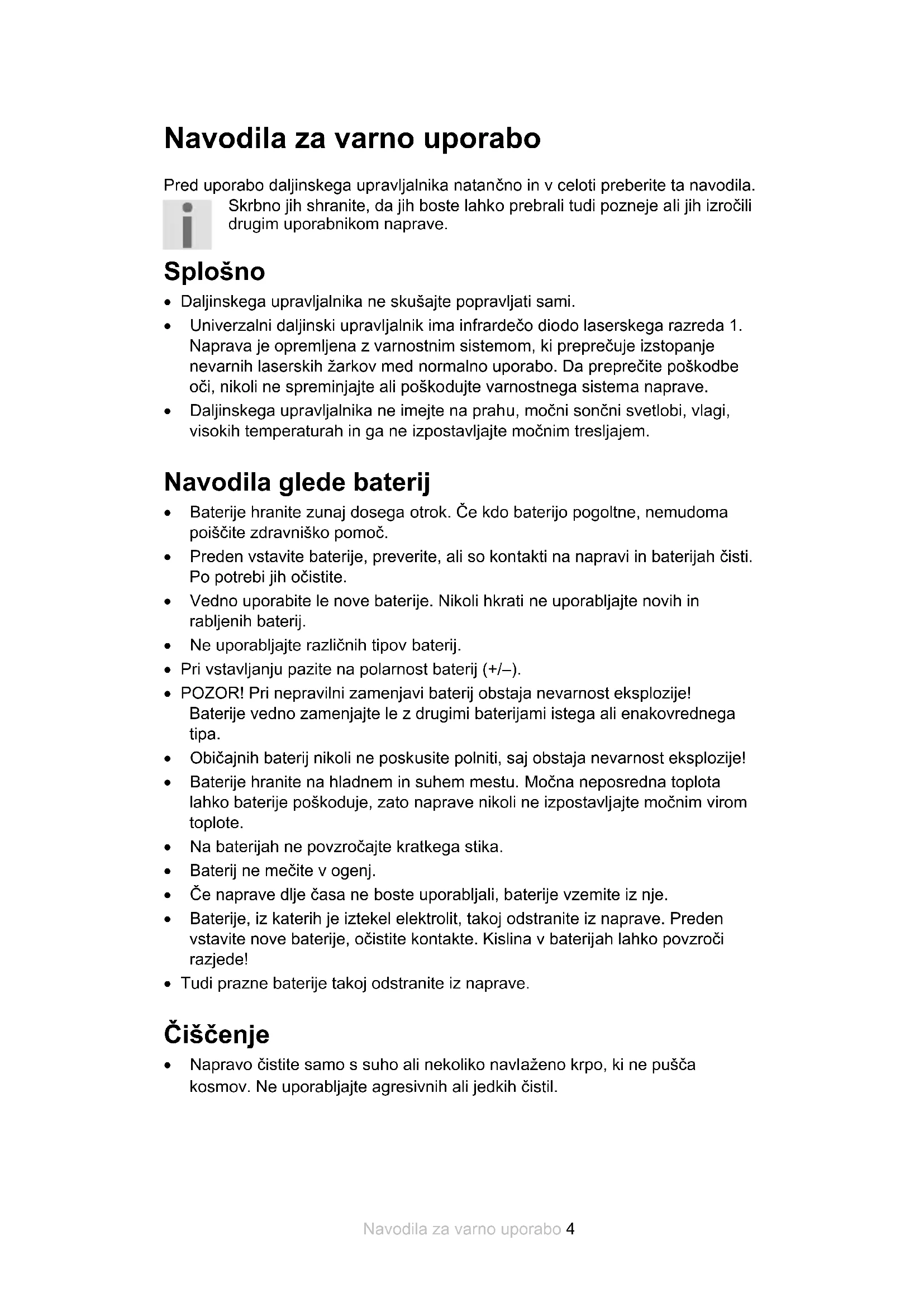 Baterije Izrabljene baterije ne sodijo med gospodinjske odpadke! Oddajte jih na zbirnem mestu za stare baterije.