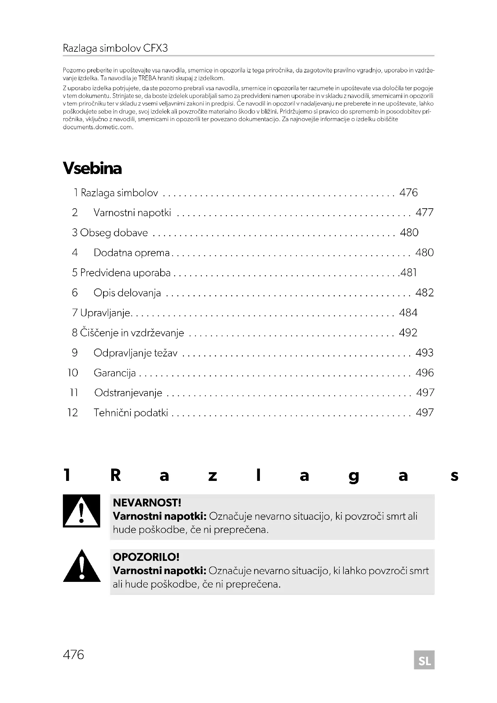 - Napravo priključite v vtičnice, ki zagotavljajo ustrezno zaščito, pred- vsem ko mora biti naprava ozemljena. POZOR! Varnostni napotki: Označuje nevarno situacijo, ki lahko povzroči lažje ali zmerne poškodbe, če ni preprečena. OBVESTILO! Označuje nevarno situacijo, ki lahko povzroči materialno škodo, če ni preprečena. NASVET Dodatne informacije za upravljanje izdelka.SL Varnostni napotki CFX3