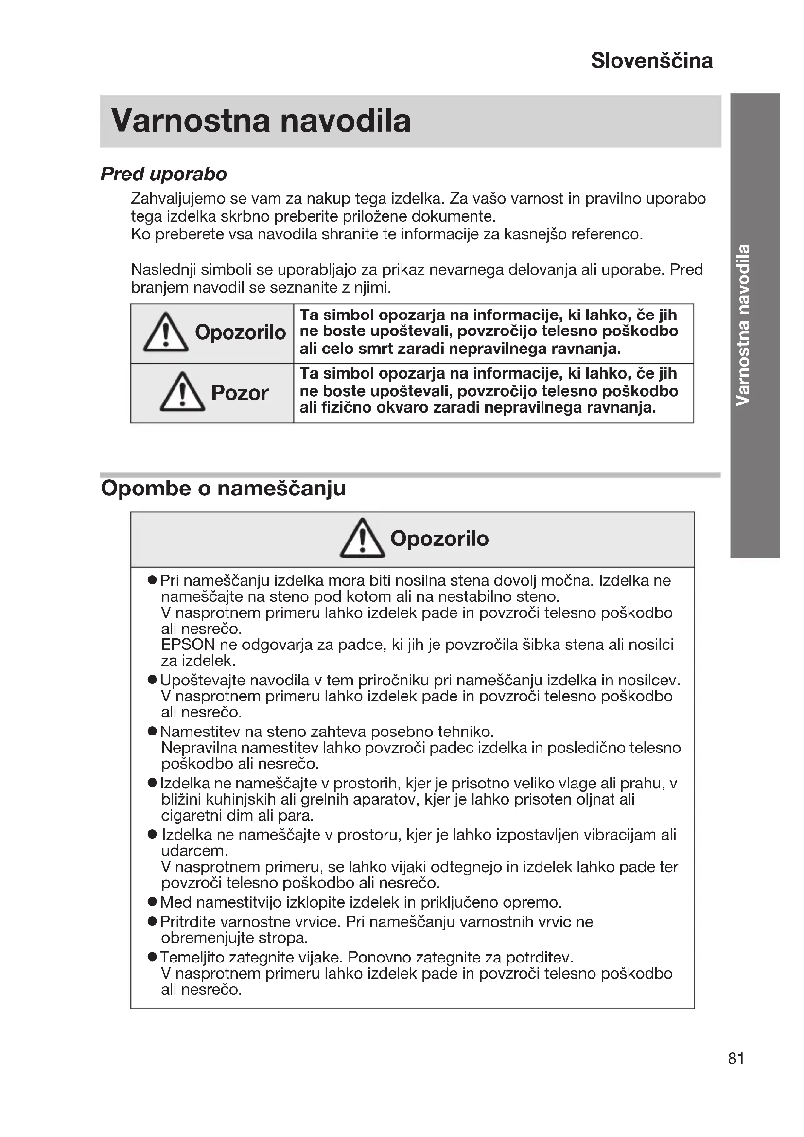 NAVODILA ZA UPORABO ELPSP02 EPSON