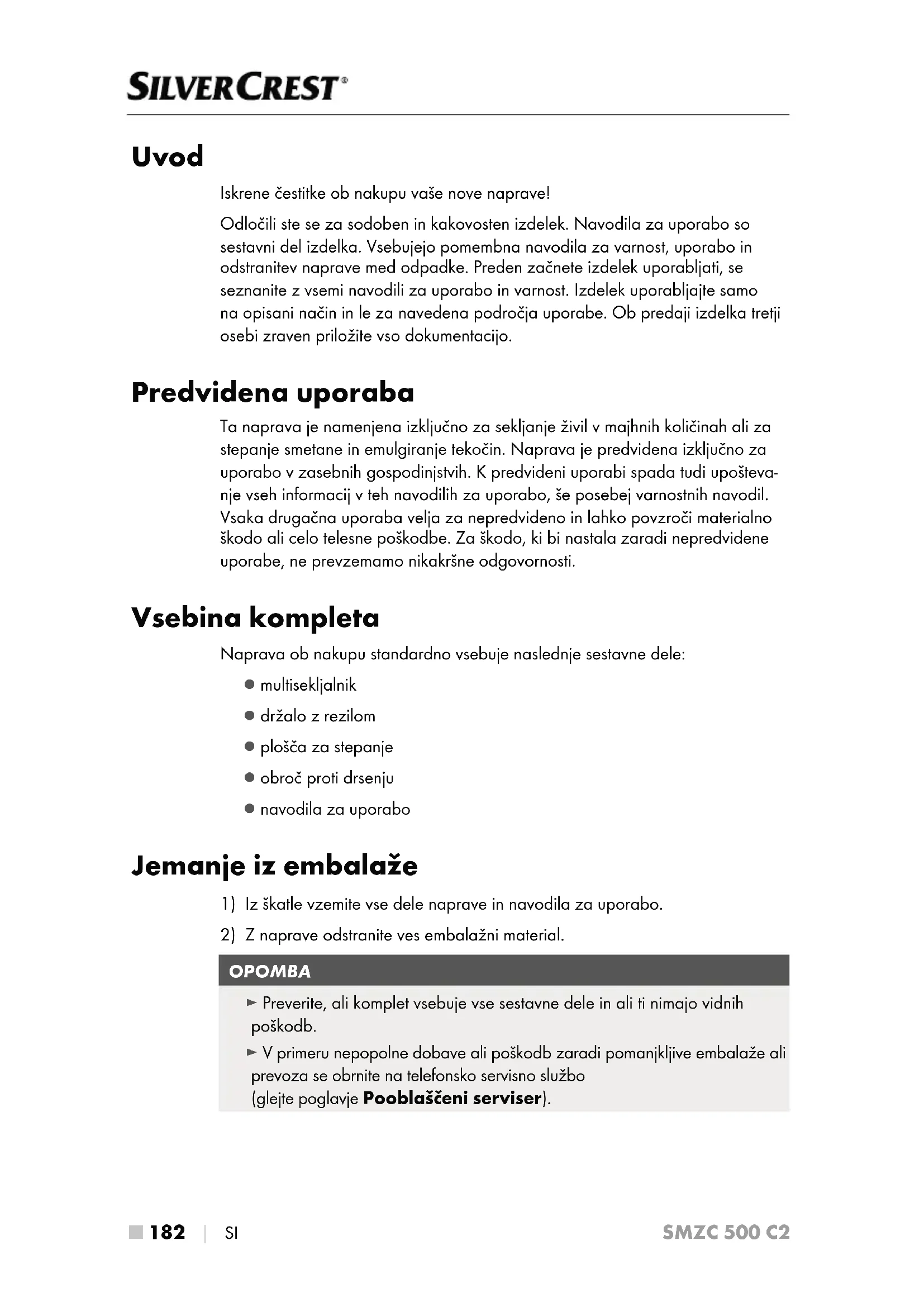 NAVODILA ZA UPORABO SMZ 260 J4 SILVERCREST