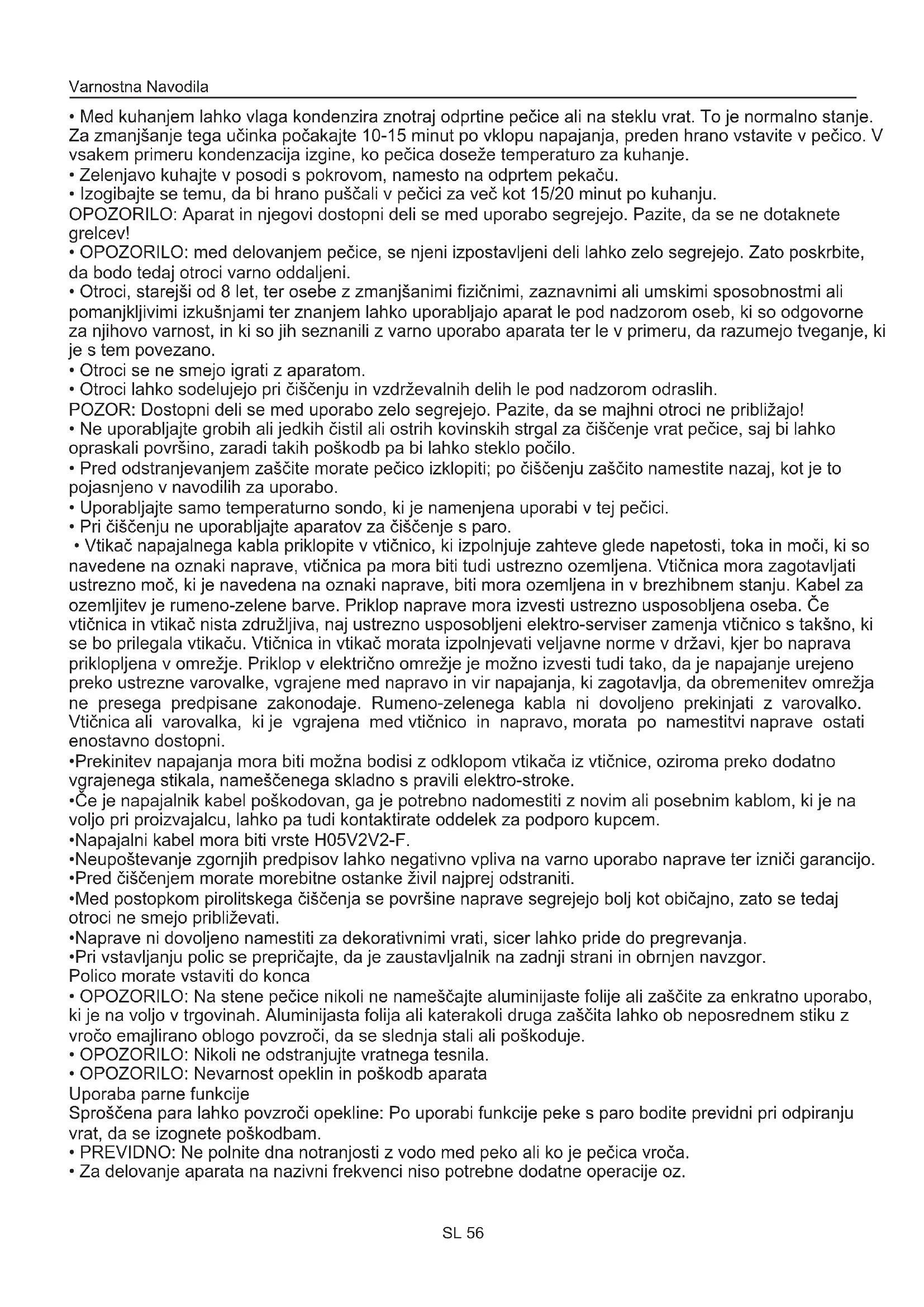 - Za delovanje aparata na nazivni frekvenci niso potrebne dodatne operacije oz. Varnostna Navodila SL 56Povzetek SL 57 Čiščenje in vzdrževanje pečice Splošna navodila
