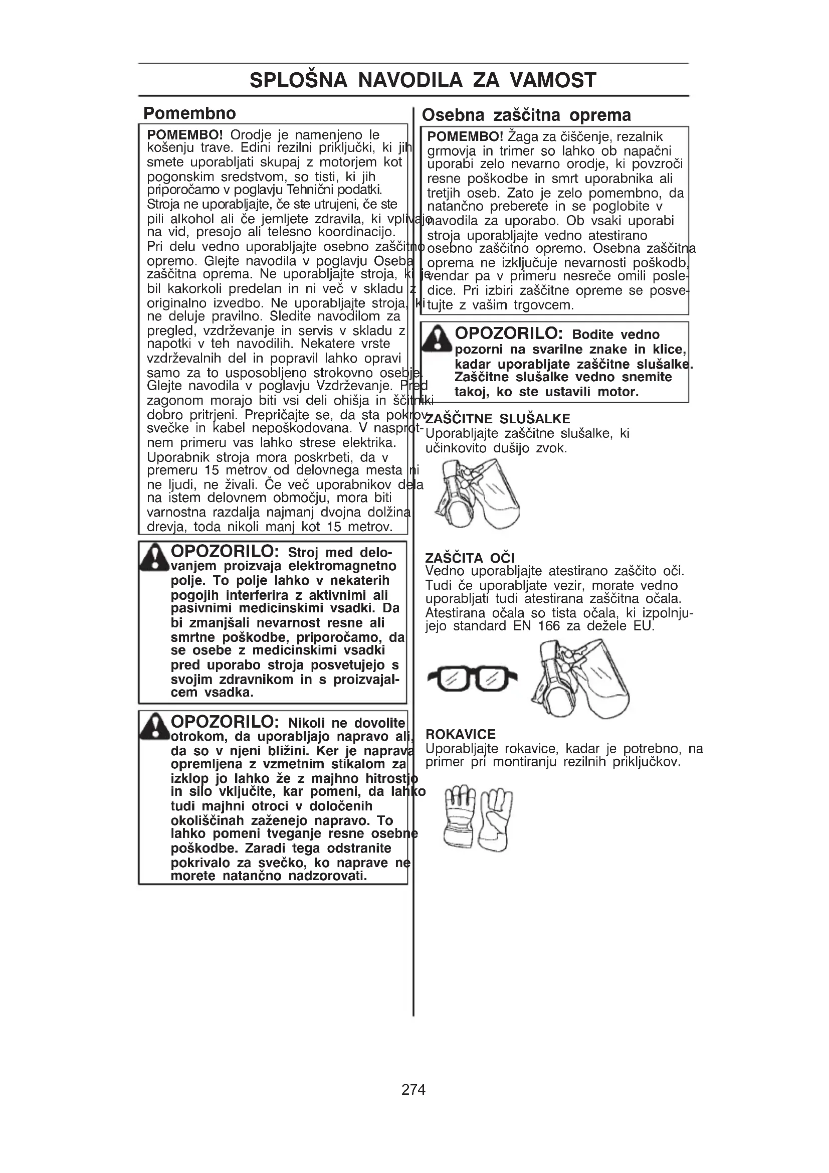 274SPLOŠNA NAVODILA ZA VAMOST