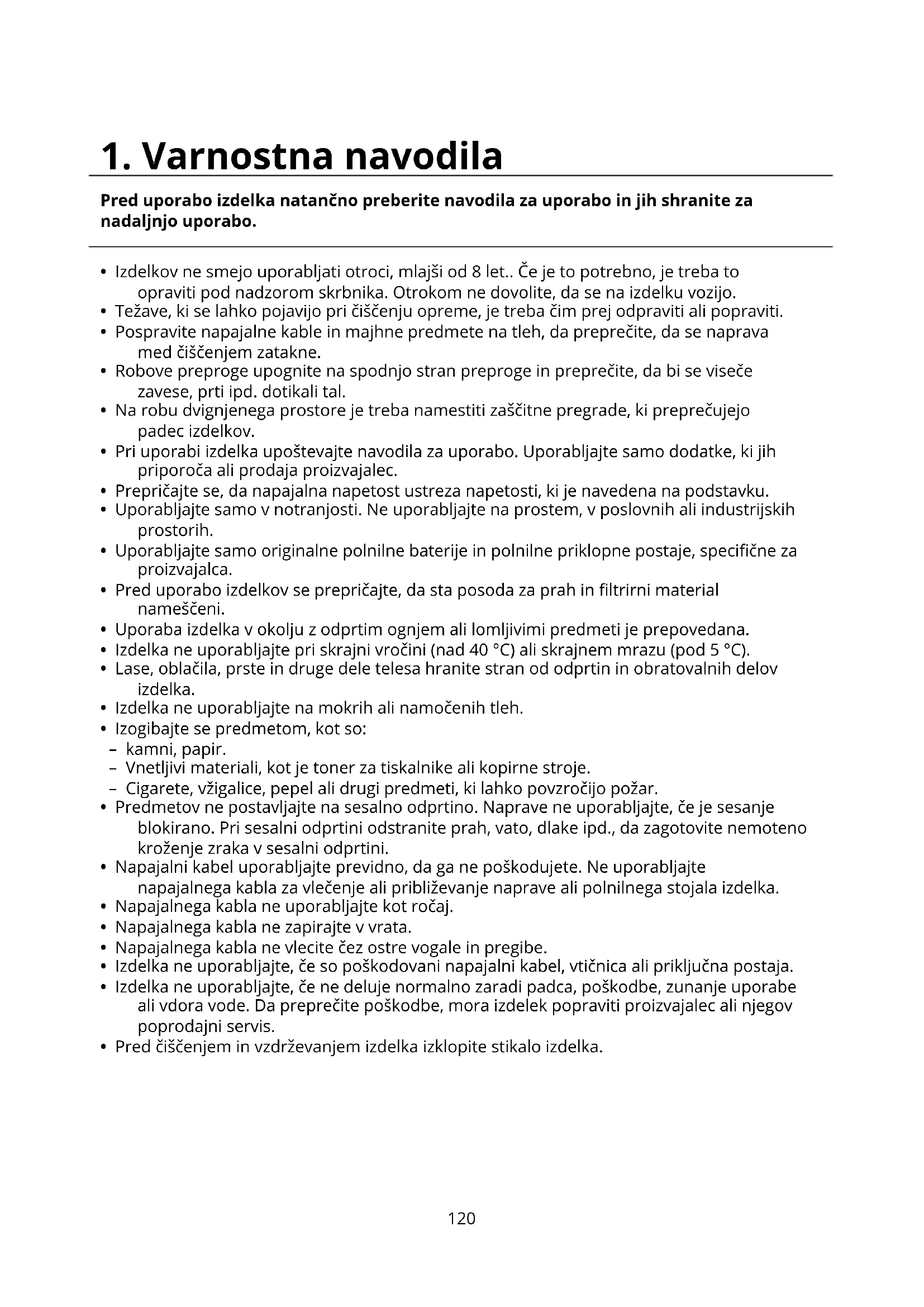 - Izdelka ne uporabljajte na mokrih ali namočenih tleh.