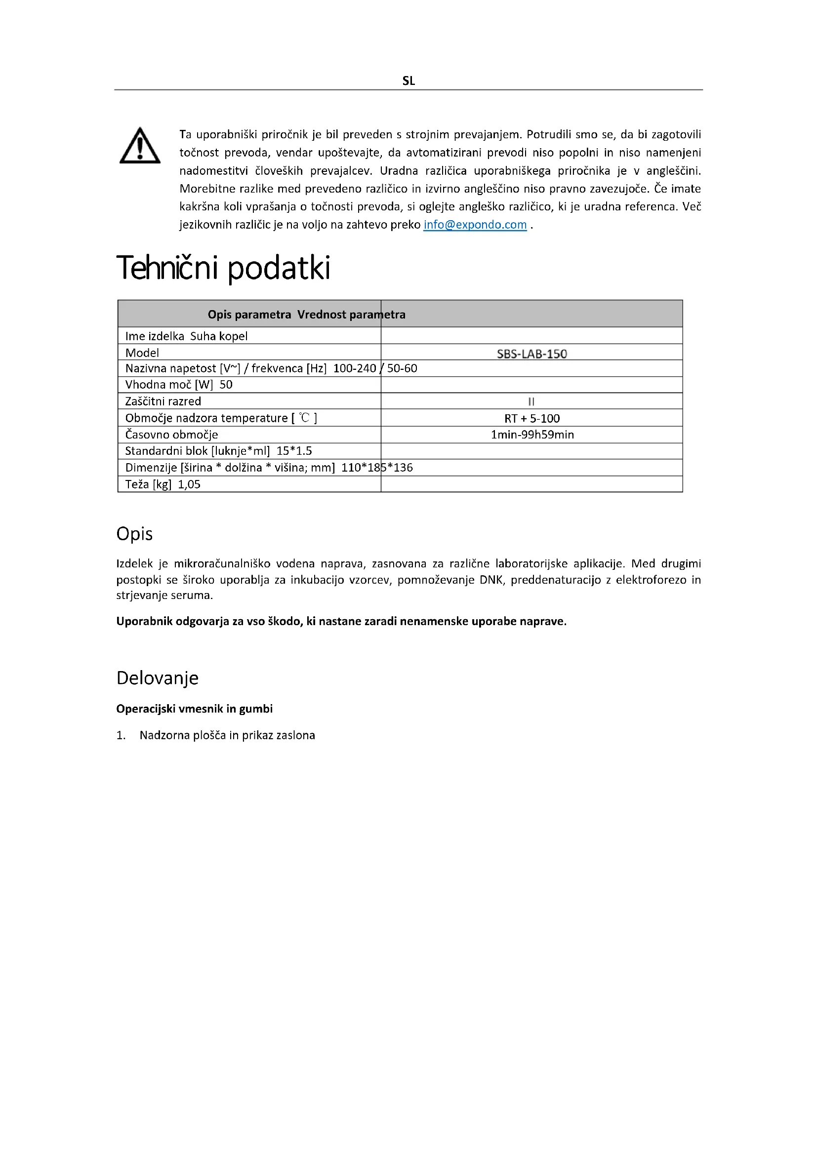 NAVODILA ZA UPORABO SBSLAB150 STEINBERG