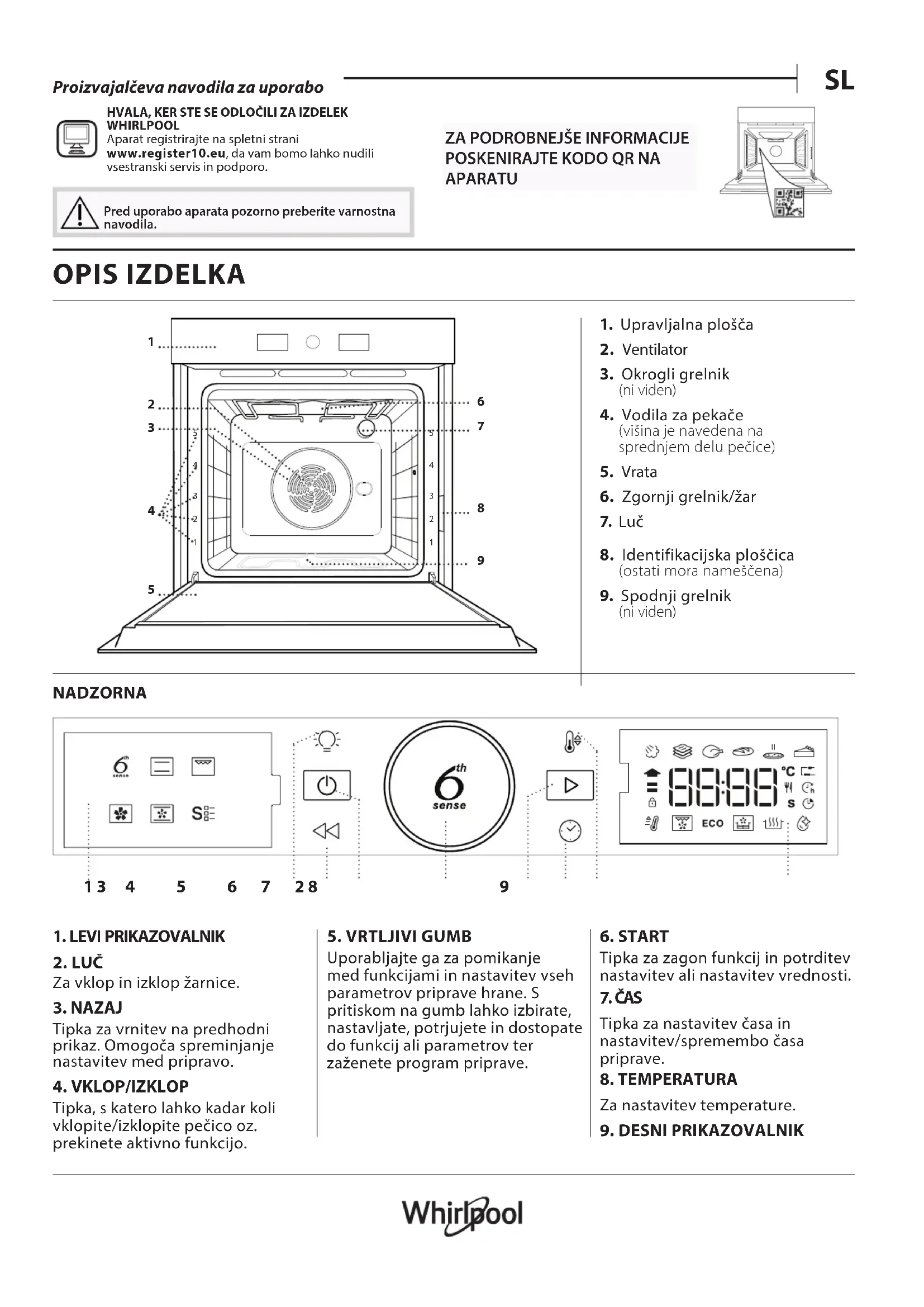 WOI4S8HM2SWA - Pečica WHIRLPOOL - Brezplačna navodila za uporabo