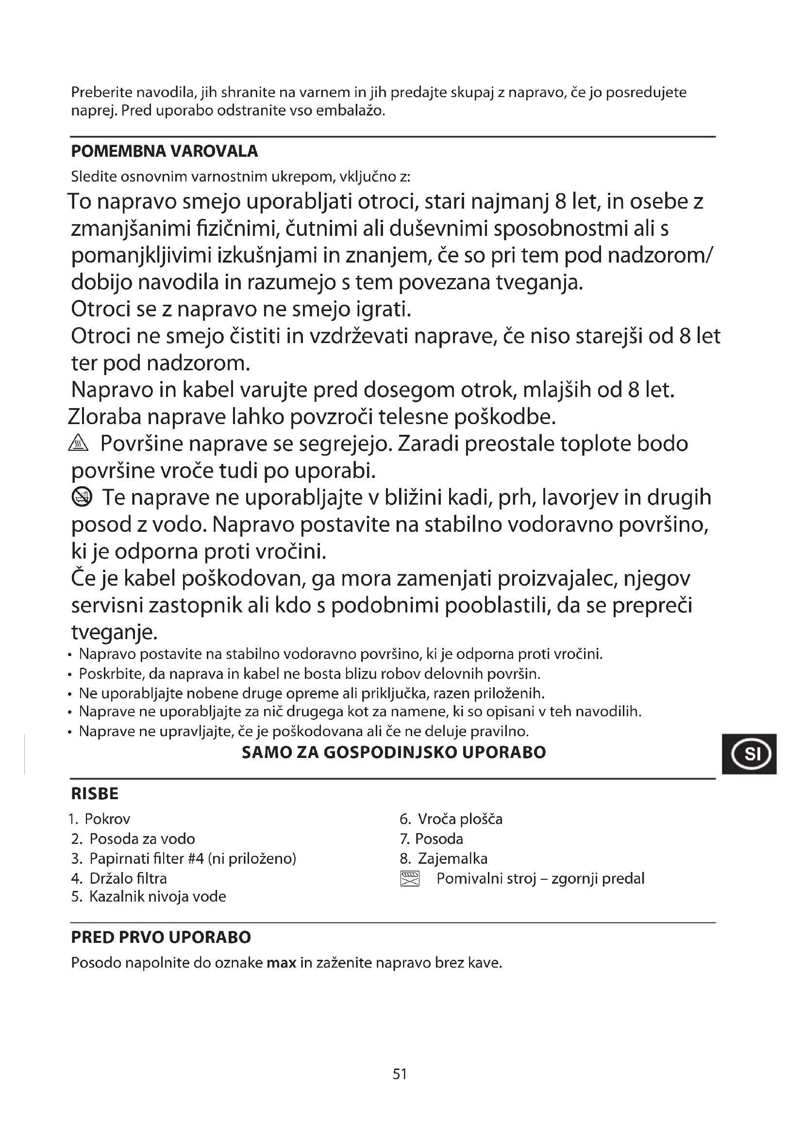5. Posodo in držalo ltra pomijte ročno.