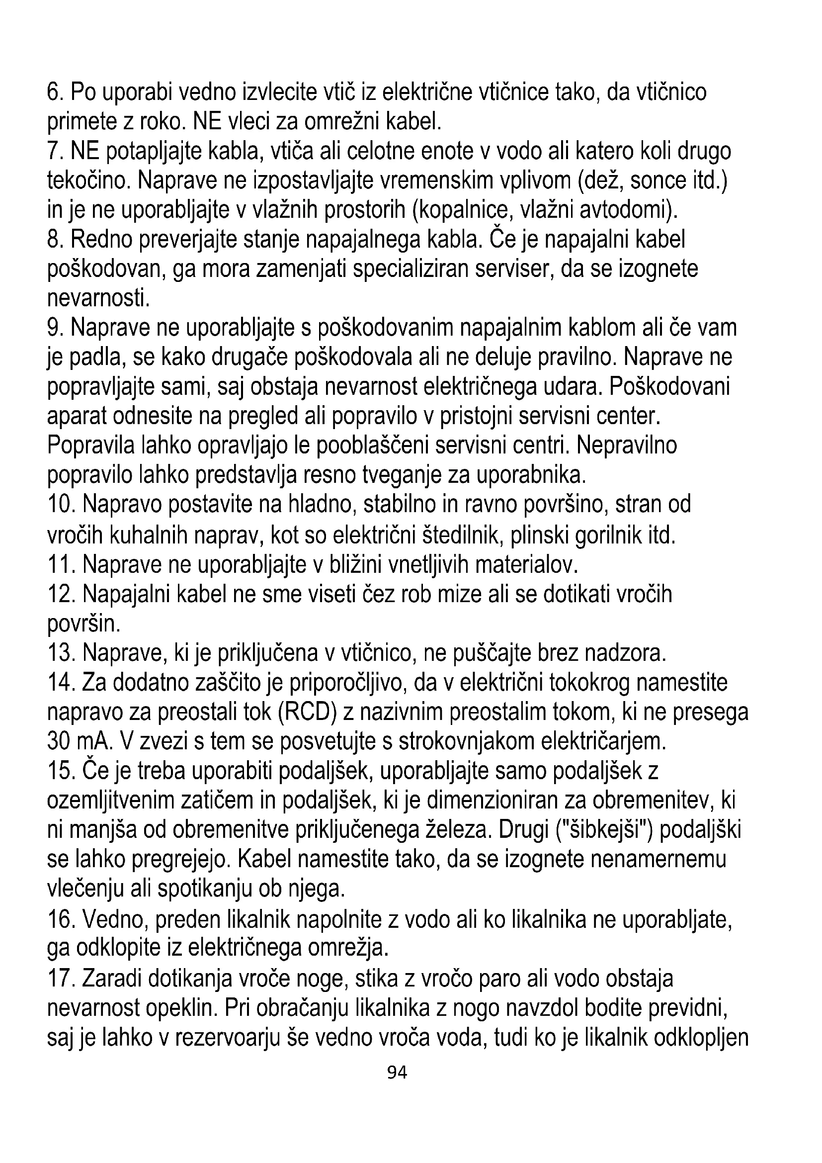 17. Zaradi dotikanja vroče noge, stika z vročo paro ali vodo obstaja