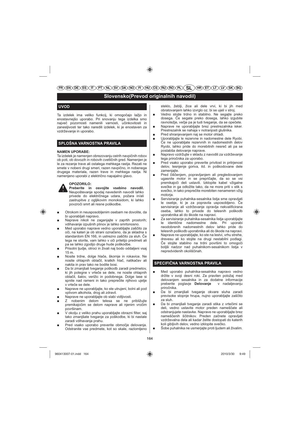 Motorové nástroje používejte ve vhodnou denní dobu - ne brzy z ráno nebo pozd veer, nebo lidé mohou být rušení. Pizpsobte se dob dle místních naízení (mimo dobu noního klidu). Pro snížení úrovn hluku omezte poet kus nástroj spuštných ve stejnou dobu a fukar používejte pi nejnižším možném stisknutí plynu, když plníte svj 17. Capac de admisie 19. Comutator cu polaritate pozitiv¬ pe partea de aspirare 146