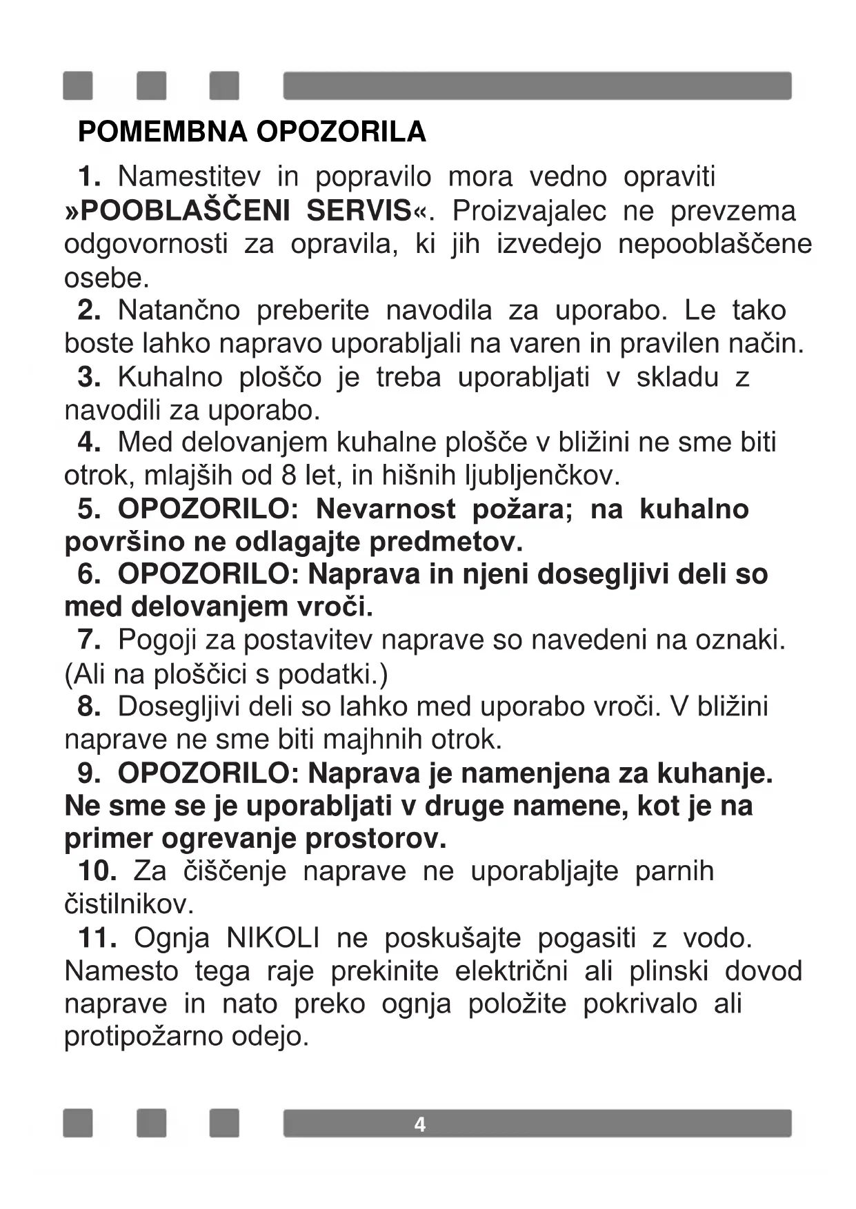 17. Gorilnikov ne uporabljajte, če na njih ni posod.