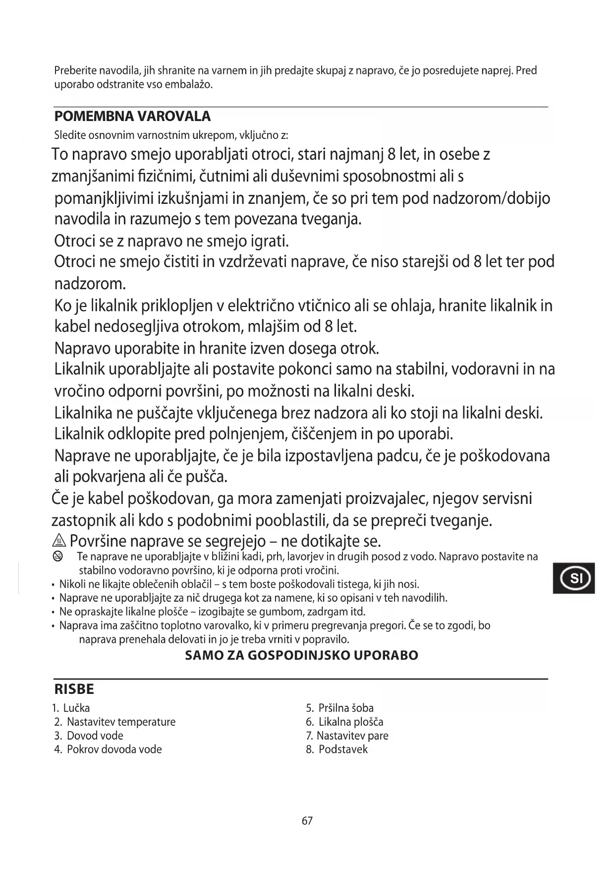 14. Likalnik shranite pokonci, da preprečite korozijo in poškodbe likalne plošče.