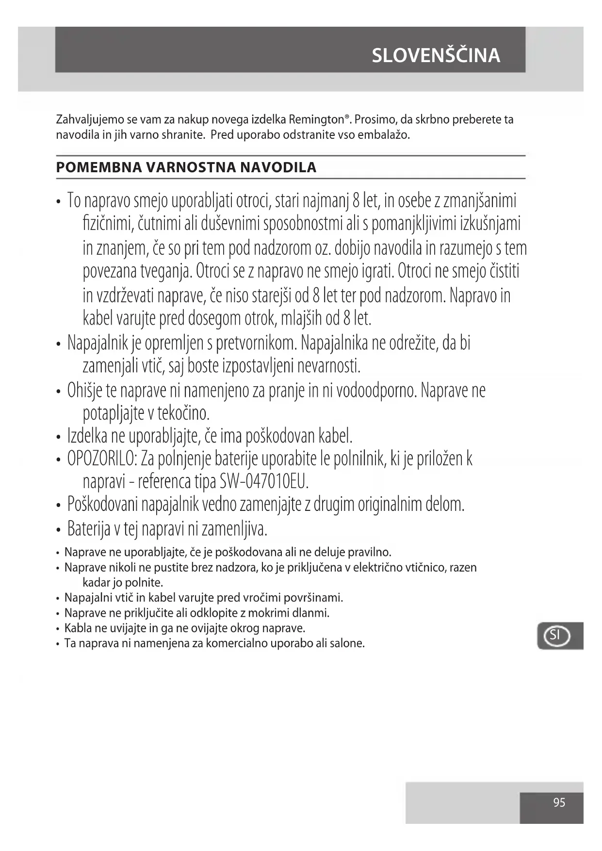 - Ta naprava ni namenjena za komercialno uporabo ali salone. SLOVENŠČINA