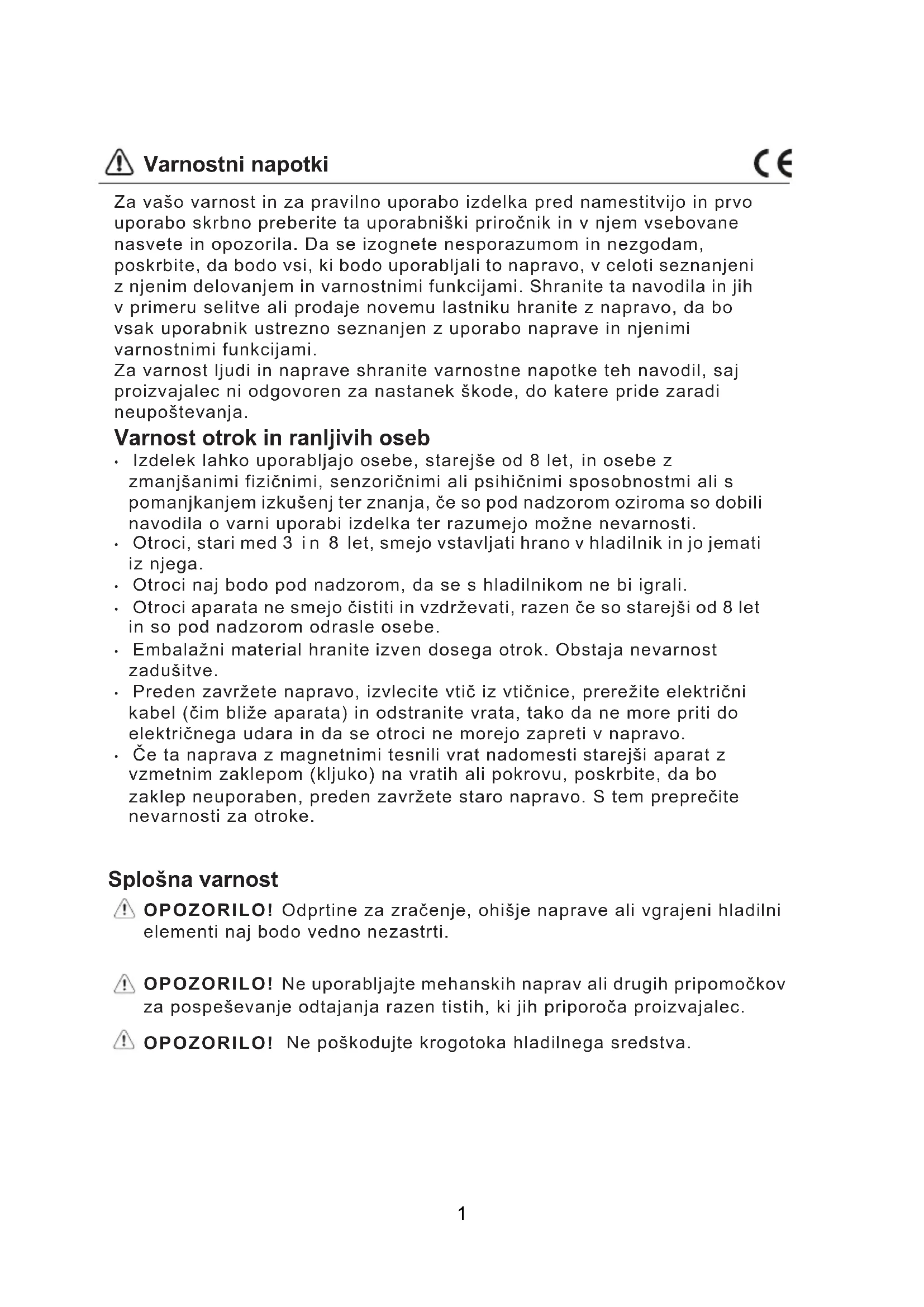 OPOZORILO! Ne poškodujte krogotoka hladilnega sredstva. 1Varnostni napotki