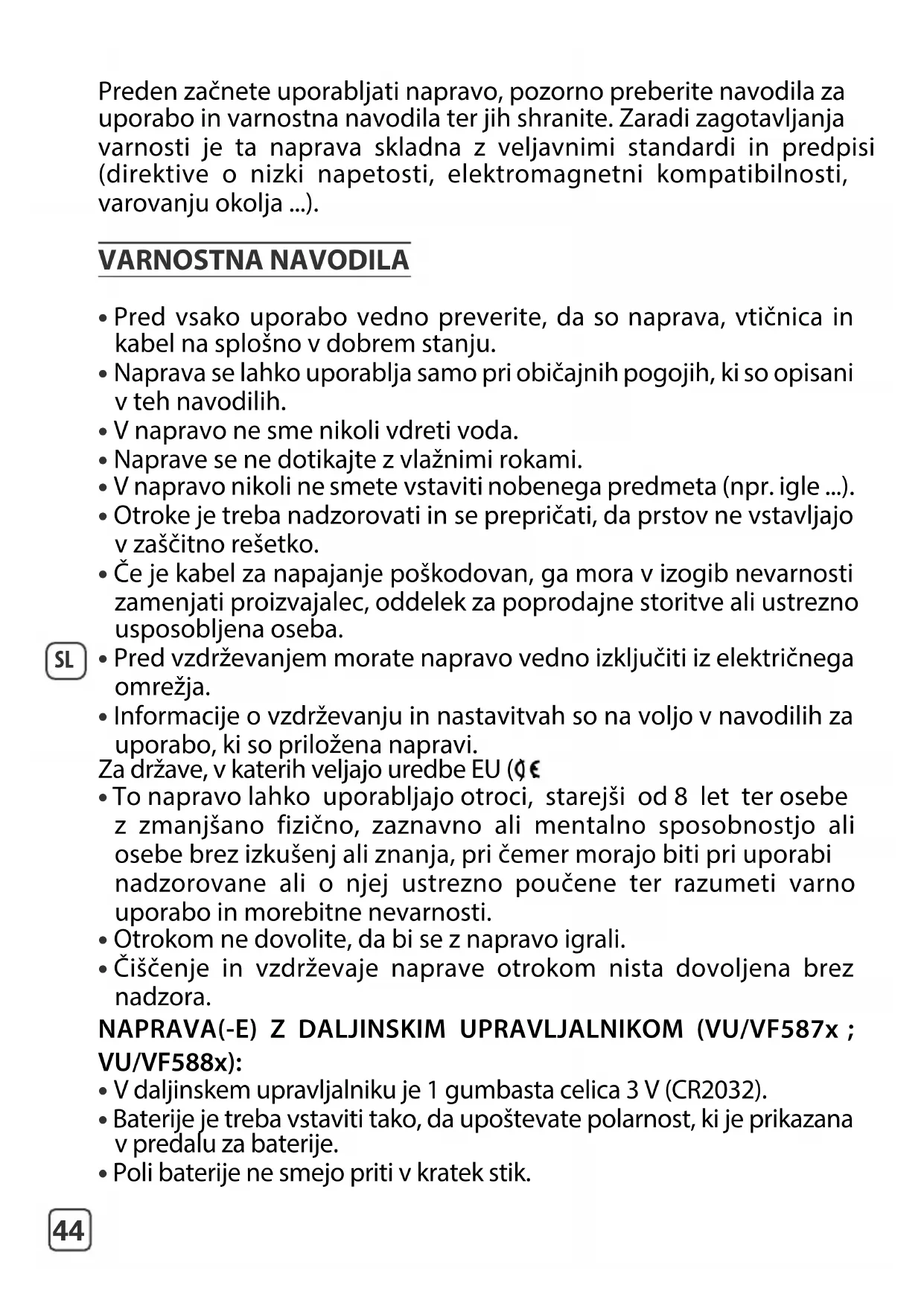 Preden začnete uporabljati napravo, pozorno preberite navodila za uporabo in varnostna navodila ter jih shranite. Zaradi zagotavljanja varnosti je ta naprava skladna z veljavnimi standardi in predpisi (direktive o nizki napetosti, elektromagnetni kompatibilnosti, varovanju okolja ...). VARNOSTNA NAVODILA