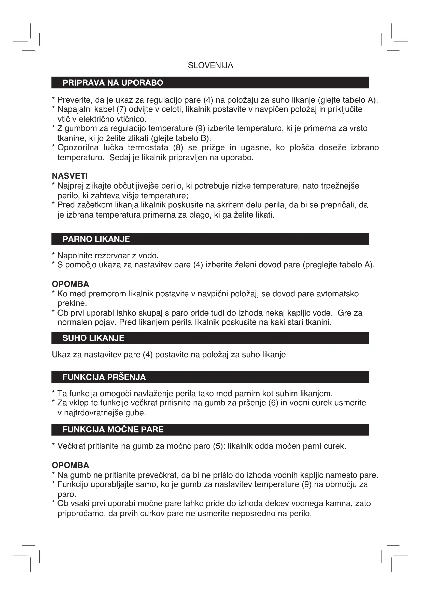 - Naprava je namenjena izključno domači uporabi za likanje oblačil.