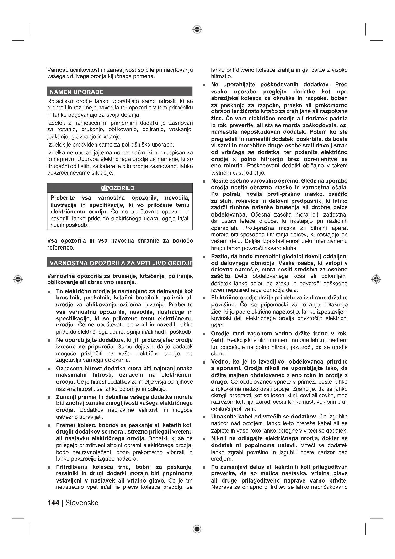 VARNOSTNA OPOZORILA ZA VRTLJIVO ORODJE