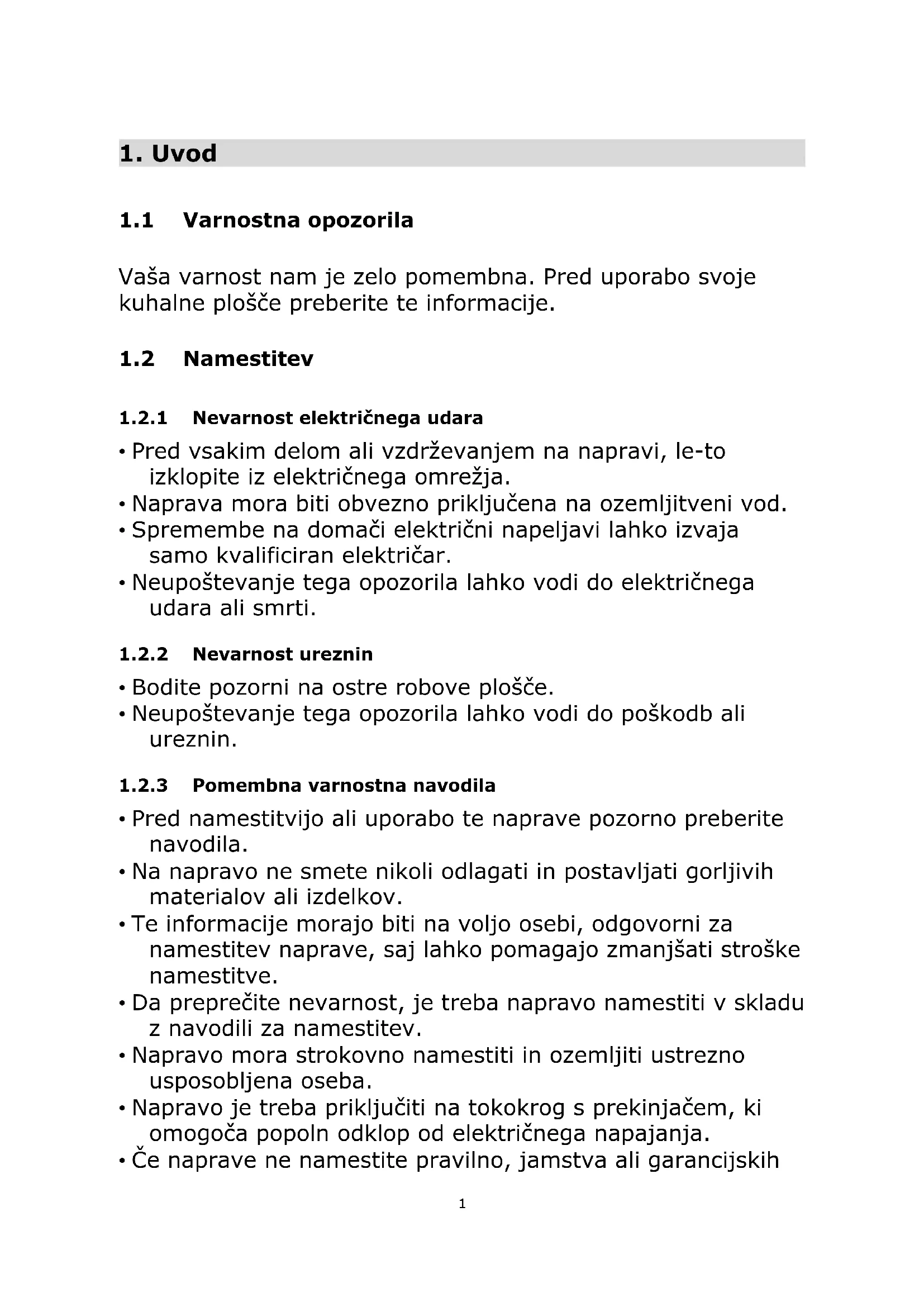 1.2.3 Pomembna varnostna navodila